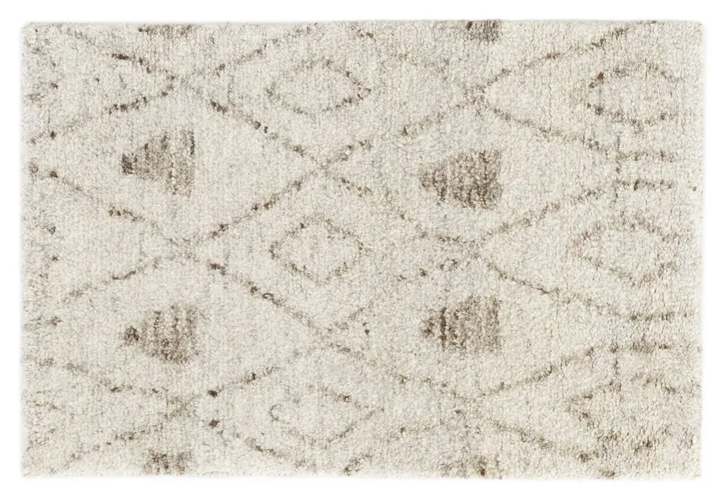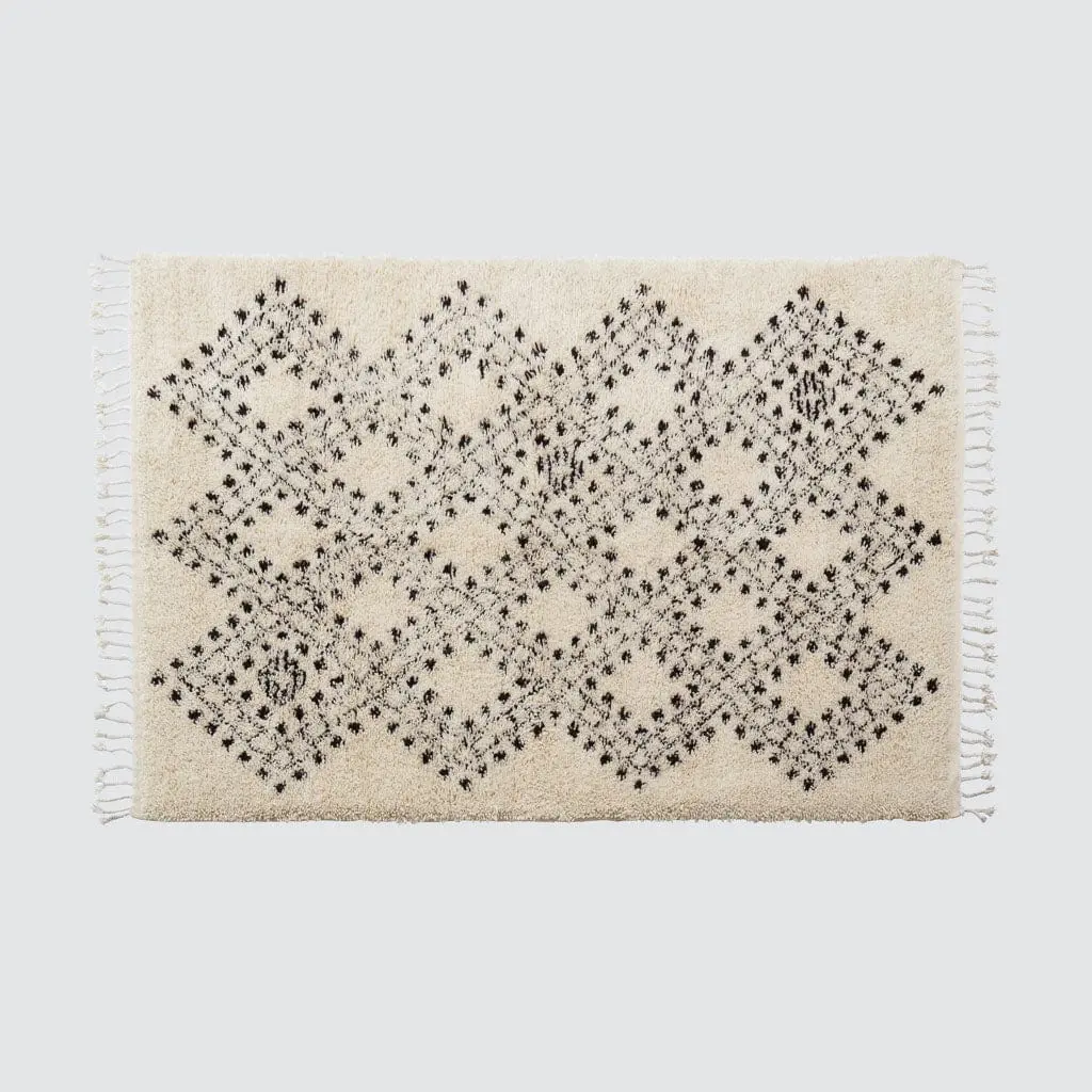 This black and cream Beni Ourain rug features traditional diamond patterns hailing from Morocco’s High Atlas mountains. Masterfully hand-knotted using extra thick, all natural sheep’s wool, this pile-knot rug is one of the softest and most luxurious rugs your feet will ever touch.While most Moroccan rugs on the market today are vintage, this beauty has been handcrafted exclusively for The Citizenry. Each rug takes 6 weavers a month to complete, made by a fair trade cooperative dedicated to preserving this lost art.Also available as an accent rug.Unsure of what size rug you need? Visit our rug size and style guide for more information. NOTE: This rug is a high-pile rug, with a 1 1/2" pile height. Be sure to measure for door clearance. Due to the size of this item, returns for a refund require a $65 total fee. Returns for store credit are always free.