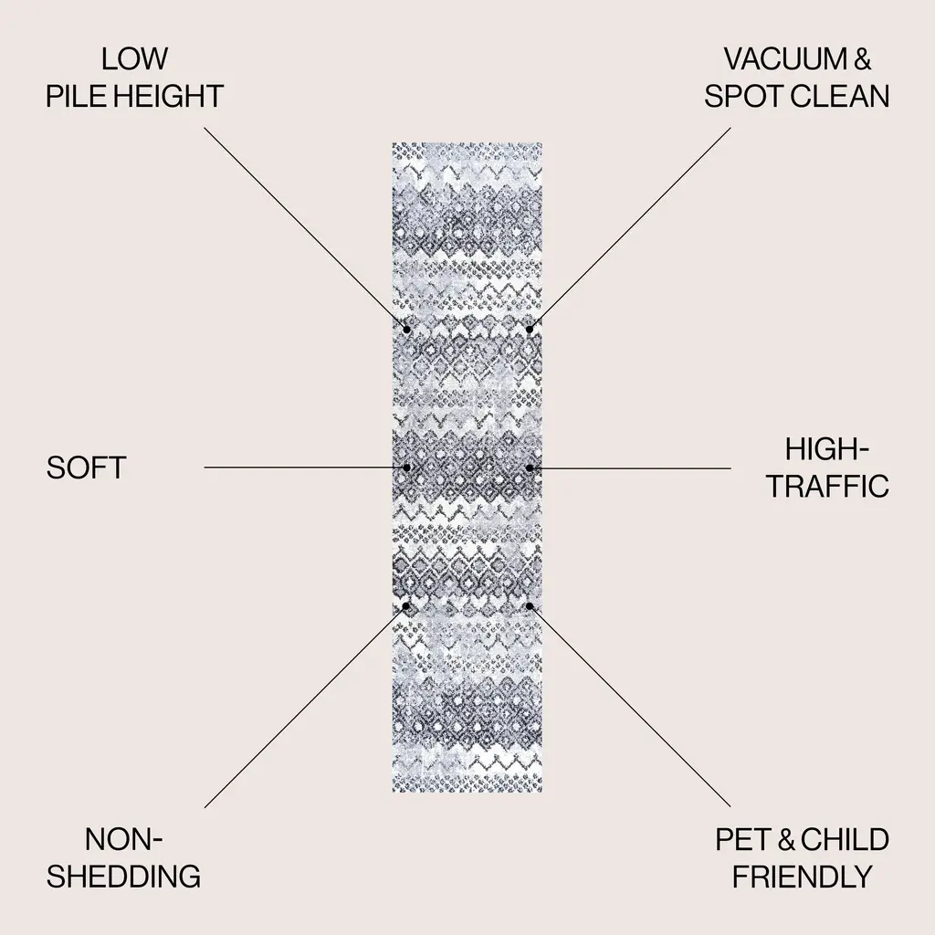 Inspired by the weathered tile designs of Morocco, this rug has a Bohemian, urban vibe. The threads give the trellis design a faded, distressed effect. This unique rug's overall pattern makes it perfect for homes with kids and pets. It's the perfect centerpiece for a modern, contemporary space, Boho room or minimalist interior.