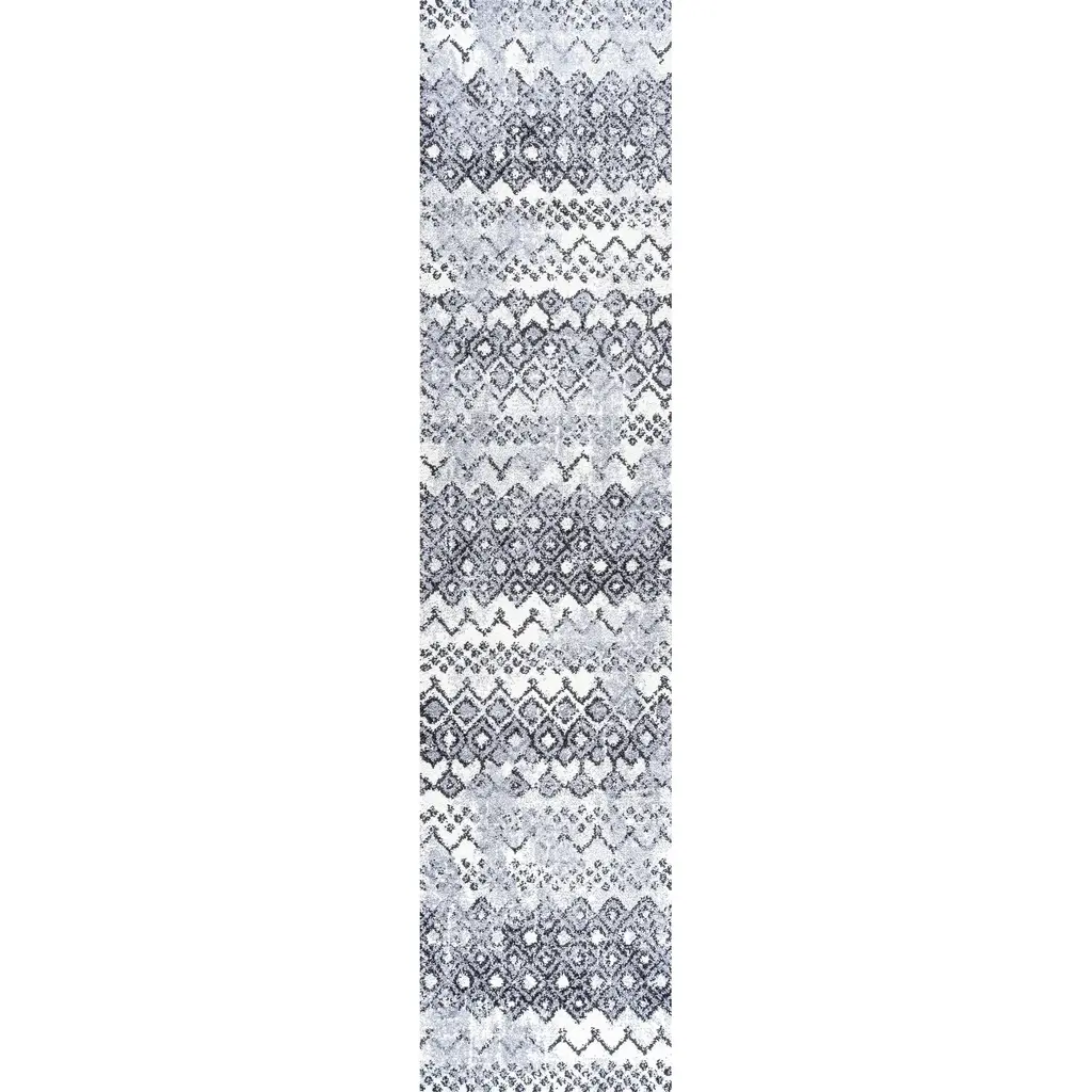 Azmar Moroccan Geometric Distressed Area Rug - Ivory,black / 2 X 10