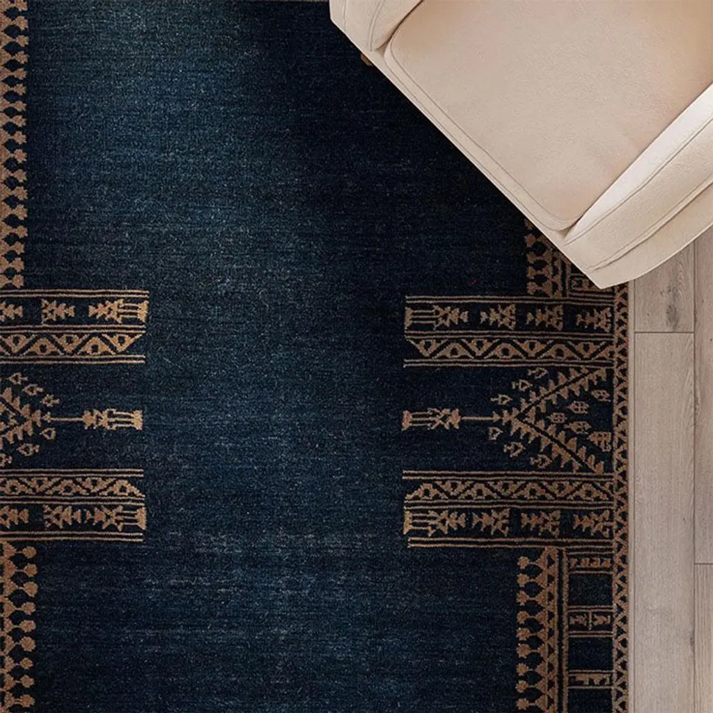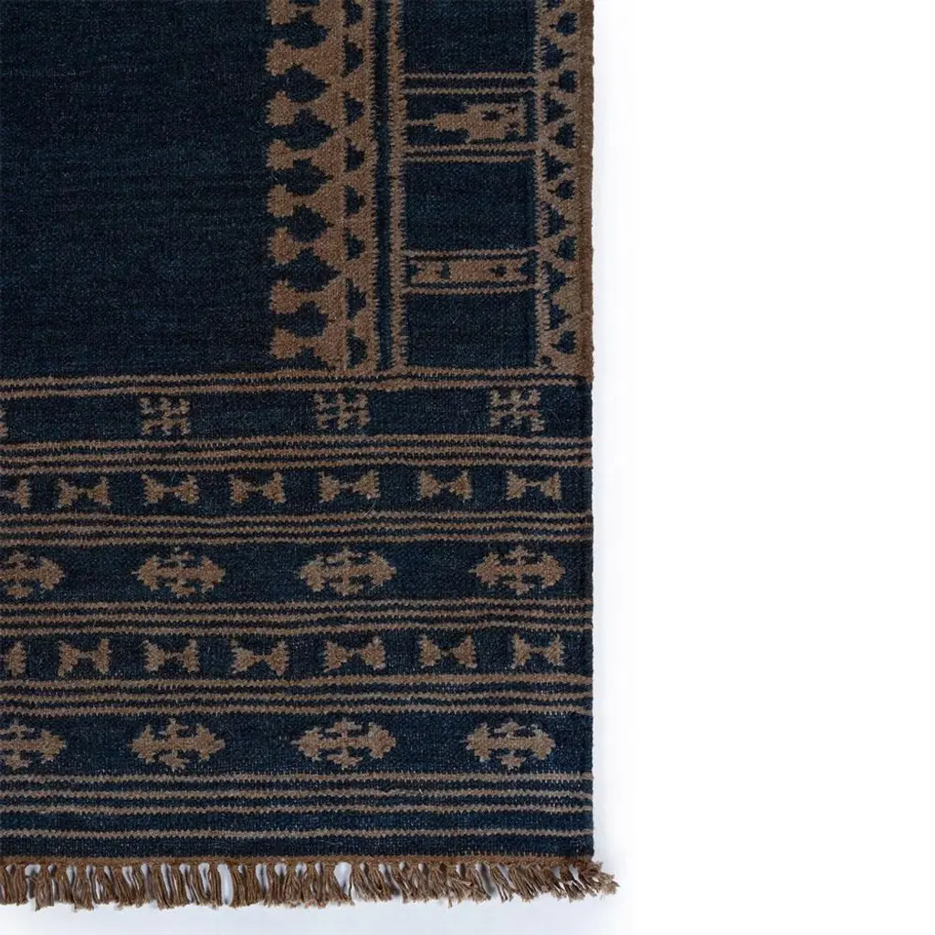 Azores Global Bazaar Indigo Wool Brown Accent Tribal Patterned Rug - 8'x10'