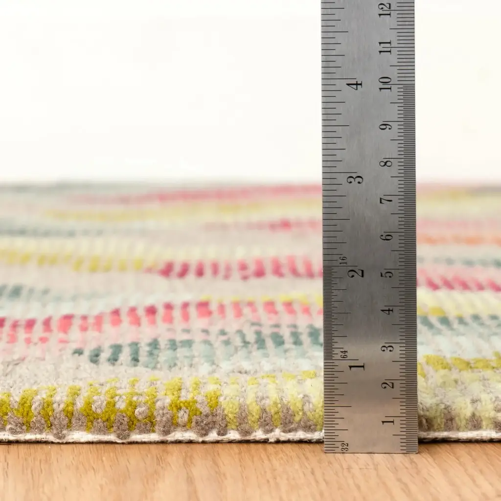 Inspired by an original vintage painting, this rug is both hand-tufted and hand-hooked to create an abstract chevron pattern. Crafted from a durable, naturally stain-resistant soft wool, it's perfect for high-traffic areas like living rooms, kids' rooms, staircases, and hallways.