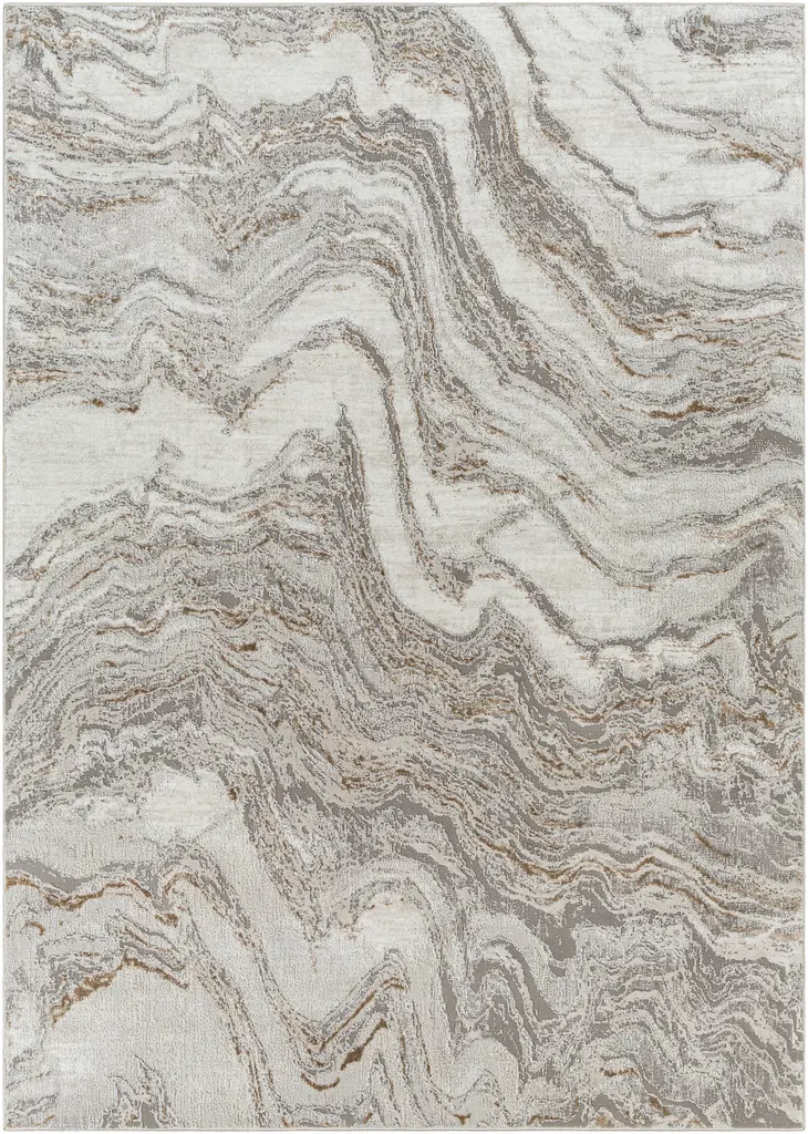 Azure Modern Abstract - Silver/gray/ivory Area Rug - 6'7" X 9'6" Rectangle