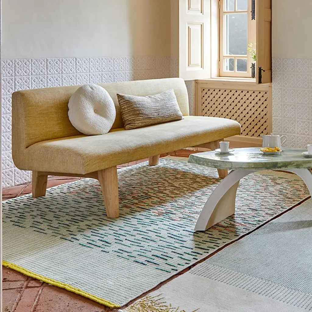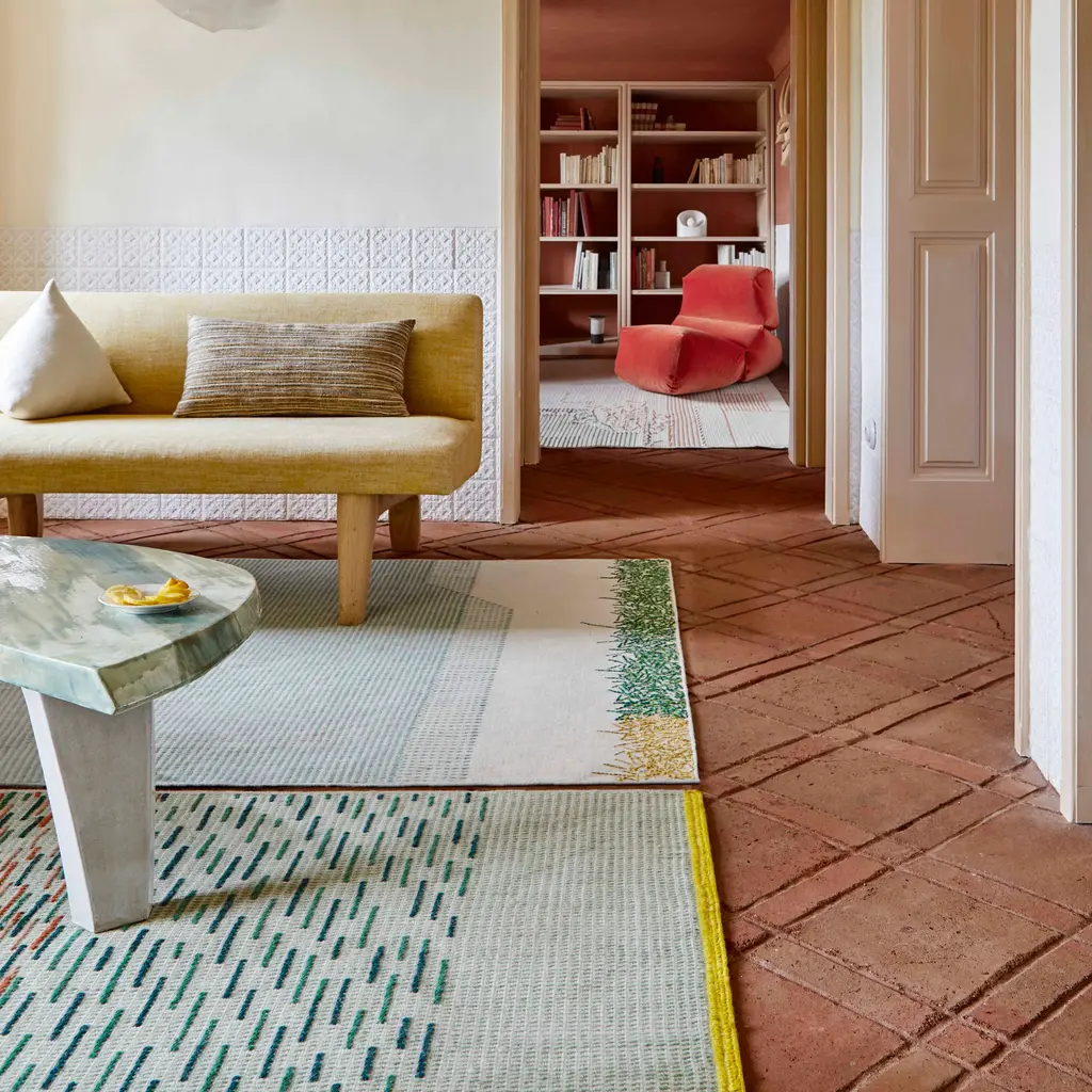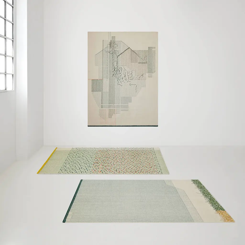 Learning about embroidery – GAN’s incredible craft and strength – Raw-Edges found themselves drawn to the aesthetics on its reverse side. The ‘back stitch’ has an unintentional hidden beauty to it, that one might so easily miss. Their aim was to understand the language of this ‘random’ backstitch and develop it into their rug collection. Focusing on color combinations, the rhythm of patterns, the thickness of the yarns, tactility and craftsmanship, they also emphasize handmade work over work on the loom and the handmade embroideries. Features