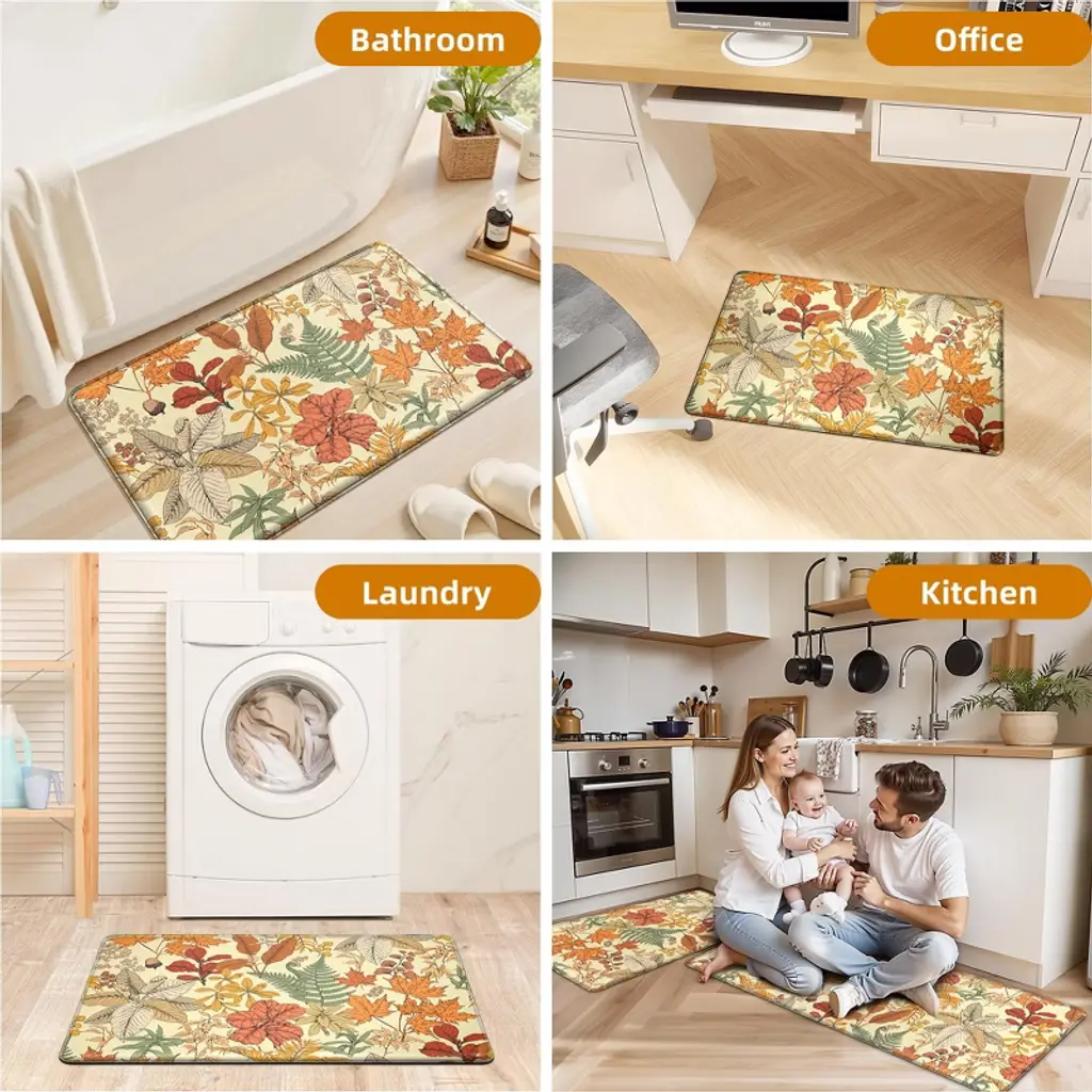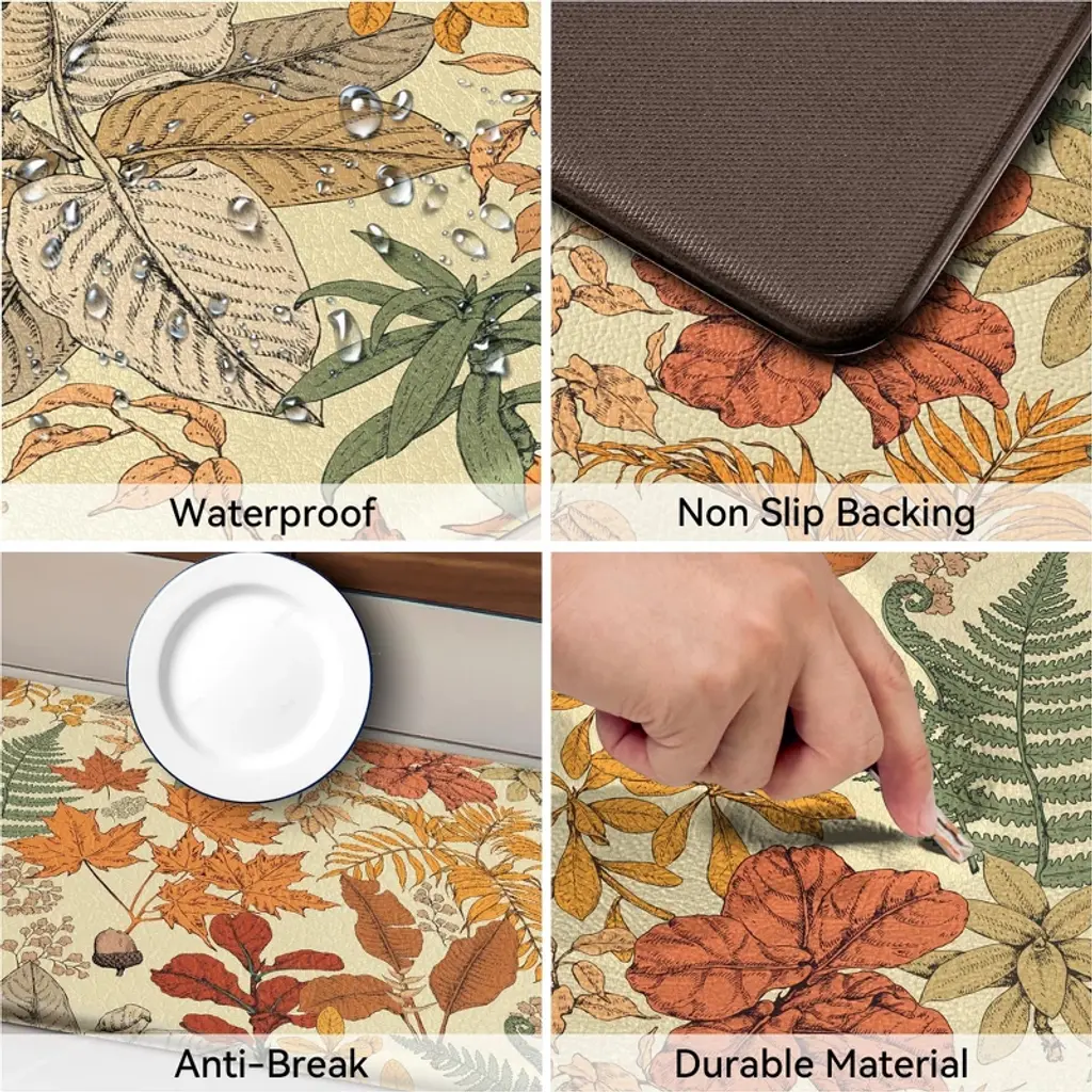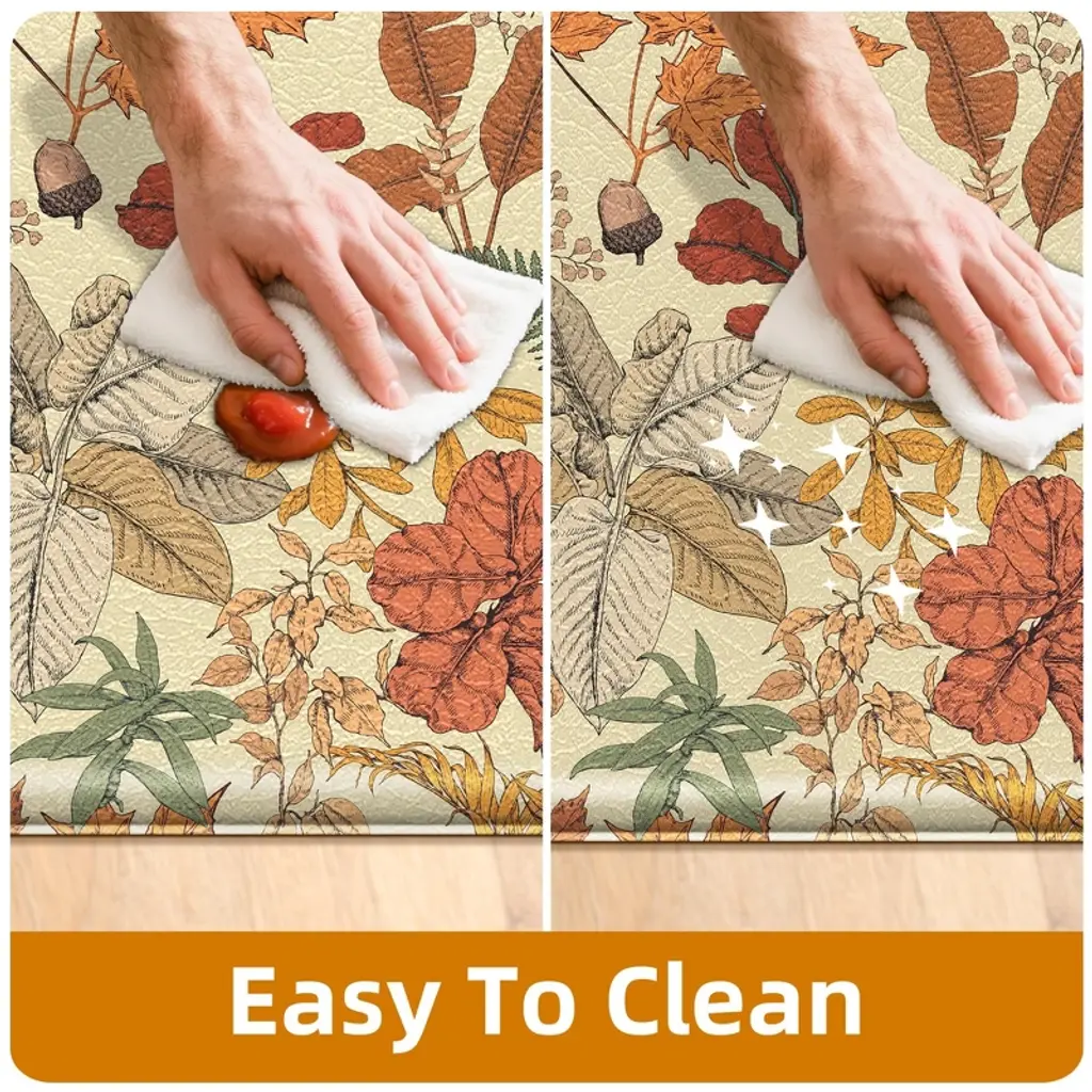 Bagokie 2 Pieces Kitchen Rugs Anti-fatigue Kitchen Mat Set, 17.3"x28" + 17.3"x47", Maple Orange