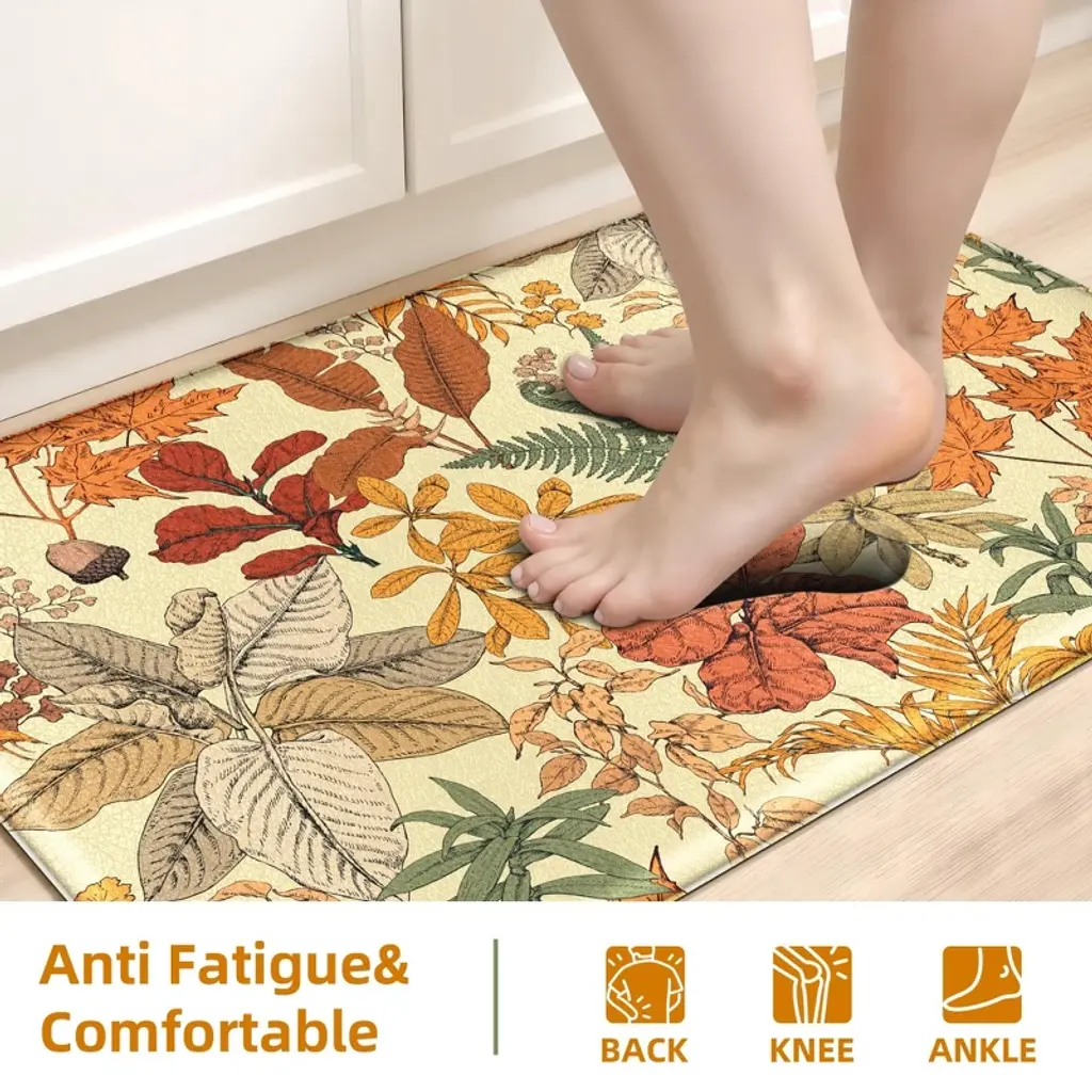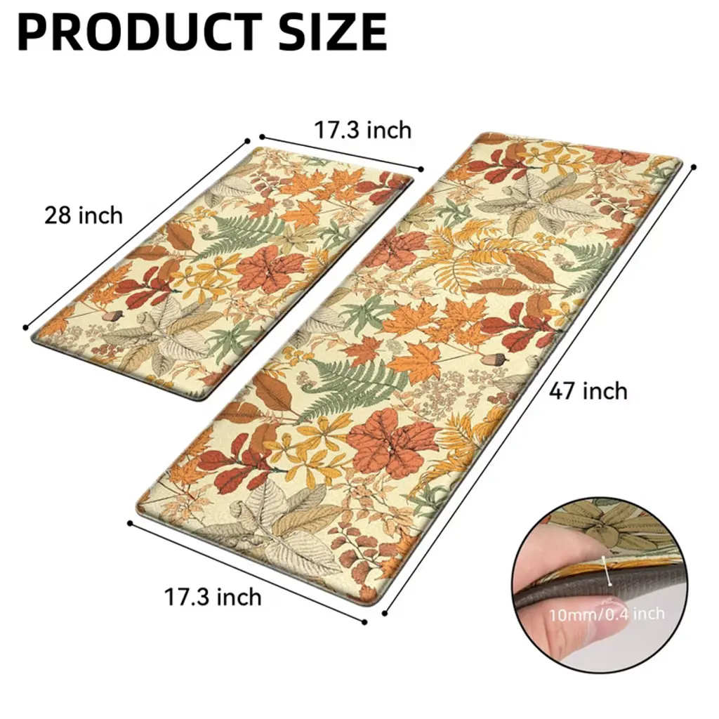 The set contains 2 rectangular kitchen mats measuring 17.3"x 47"+17.3"x 28". The comfort standing mat are made of high-quality and premium PVC materials, to ensure that the mats will keep their shape, even with extended and long-term heavy duty use. 0.4 inch extra thick anti fatigue kitchen floor mats are sure to provide cushions on your feet, knees, lower back, and joints for standing. Feel comfortable like walking on a firm but soft cloud when you are cooking in kitchen or working at your standing desk. This soft thick foam provides ample support for standing in kitchen sink, laundry room, office, bathroom, dining room, or any other high-traffic area.