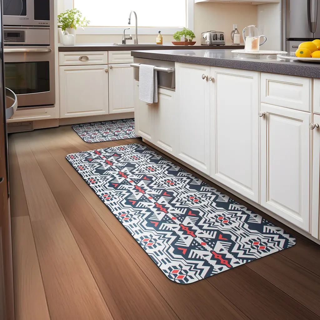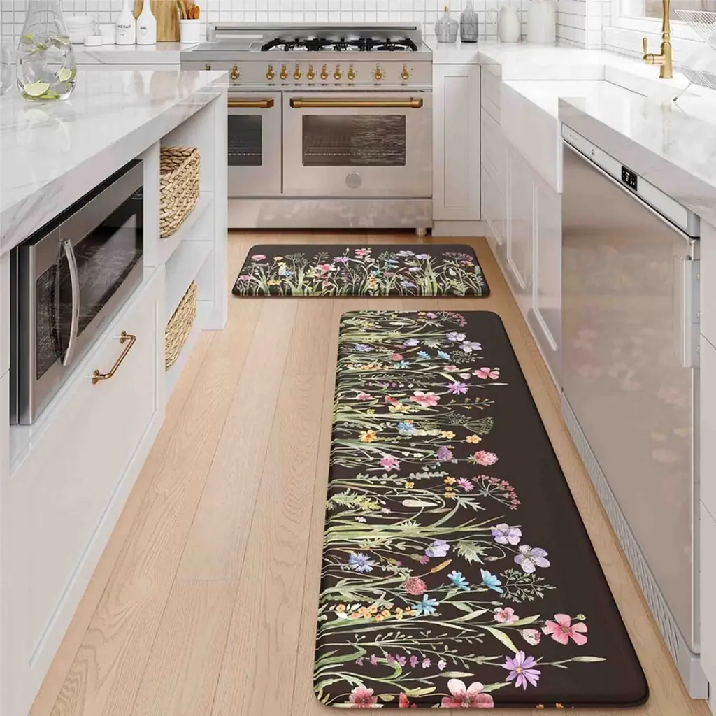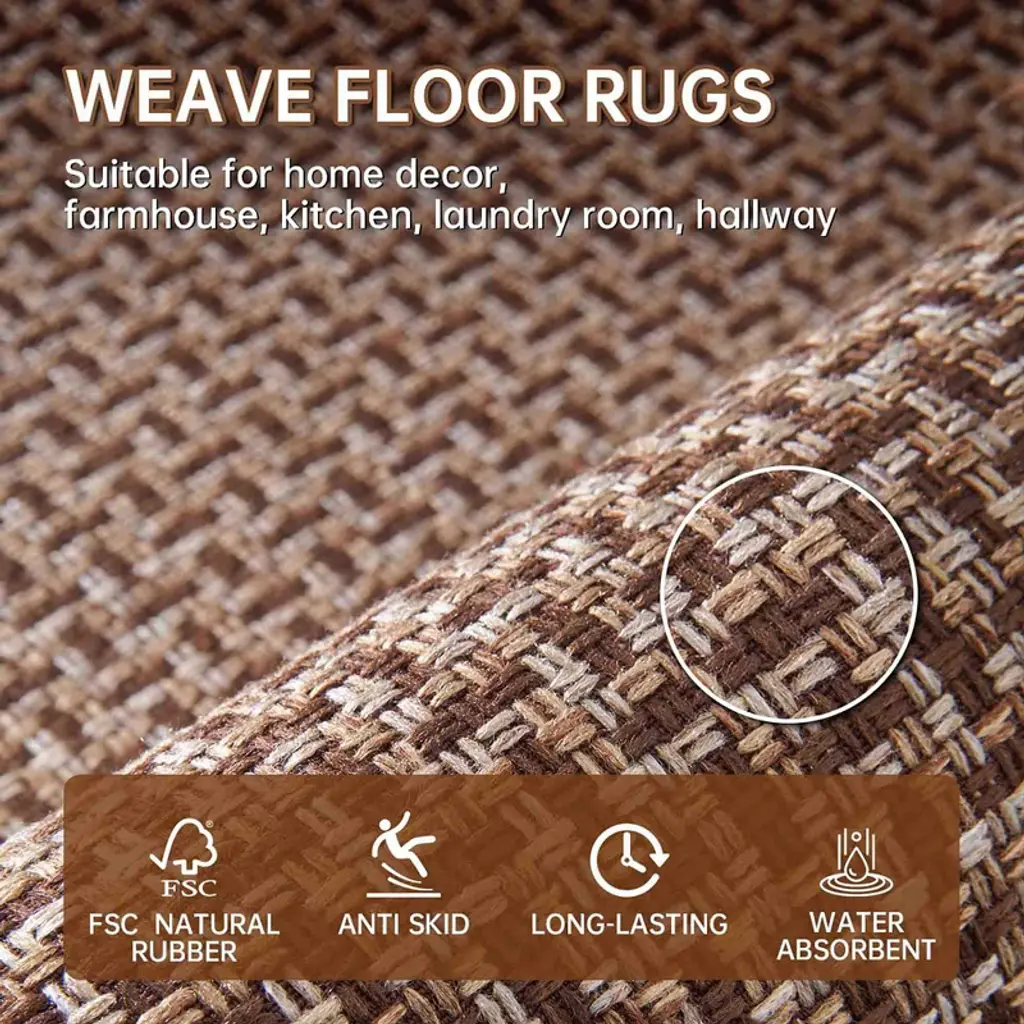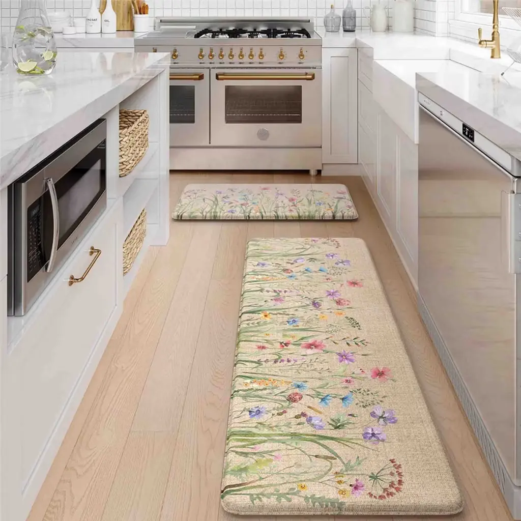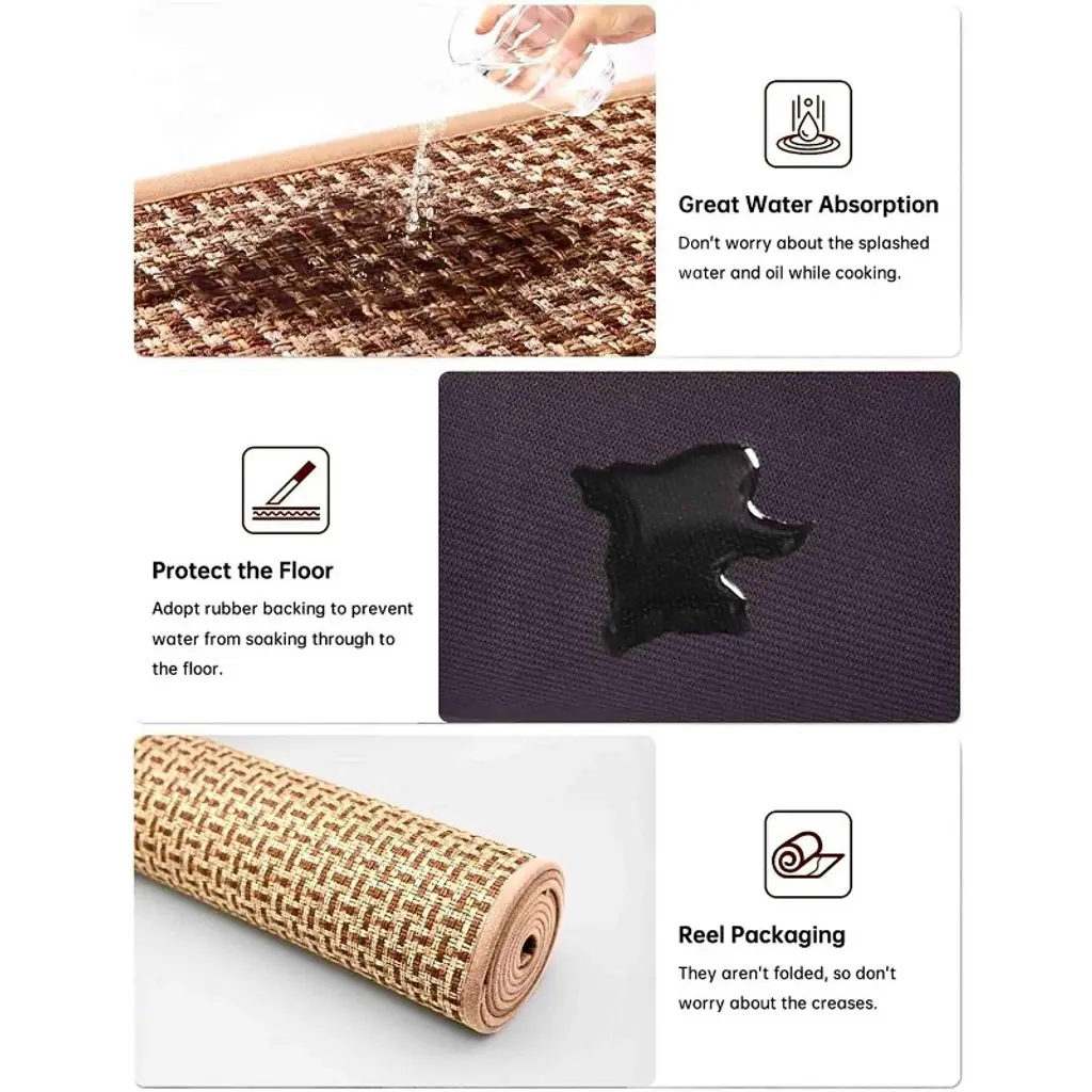 This 2-piece kitchen rug set brings comfort, protection, and timeless style to your space. Designed with absorbent fiber fabric and a waterproof rubber backing, each mat helps keep your floors dry and safe from spills, splashes, and everyday messes. Whether you’re cooking dinner or washing up at the sink, the cushioned feel adds extra comfort underfoot. With a classic woven texture and neutral tones, these rugs fit seamlessly into any kitchen decor—and cleanup is simple with a quick vacuum, hose rinse, or machine wash. From busy kitchens to high-traffic entryways, these mats offer a practical, stylish solution for every step.
