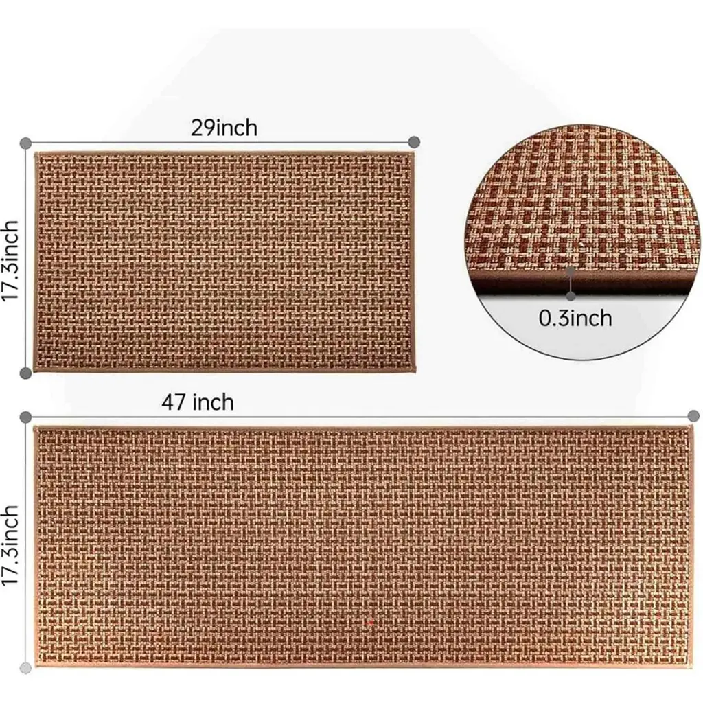 Bagokie 2Pc Non-slip Kitchen Rug Set, Brown