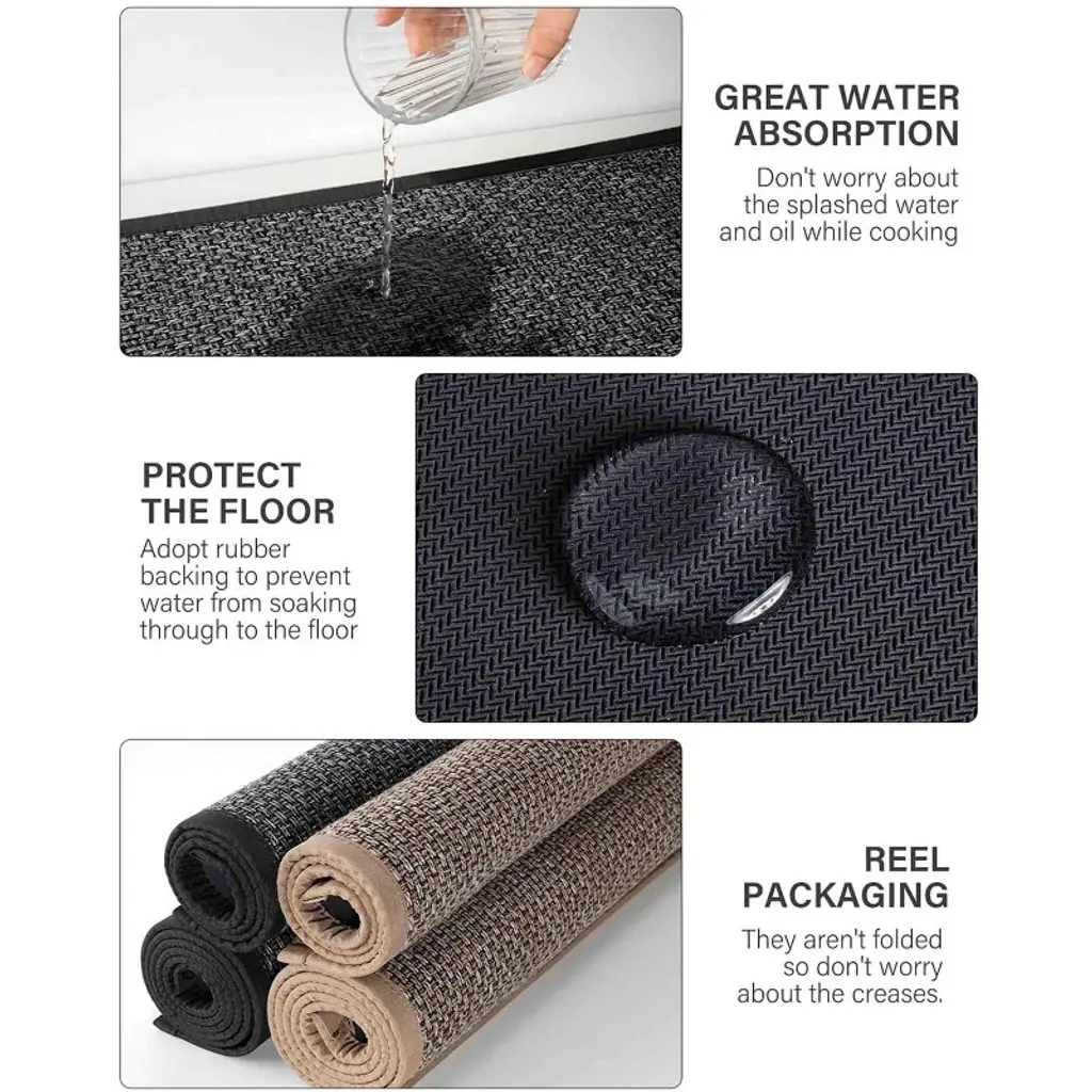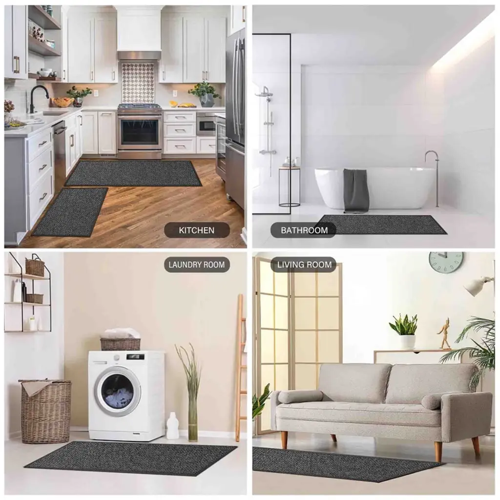 This 2-piece kitchen rug set brings comfort, protection, and timeless style to your space. Designed with absorbent fiber fabric and a waterproof rubber backing, each mat helps keep your floors dry and safe from spills, splashes, and everyday messes. Whether you’re cooking dinner or washing up at the sink, the cushioned feel adds extra comfort underfoot. With a classic woven texture and neutral tones, these rugs fit seamlessly into any kitchen decor—and cleanup is simple with a quick vacuum, hose rinse, or machine wash. From busy kitchens to high-traffic entryways, these mats offer a practical, stylish solution for every step.