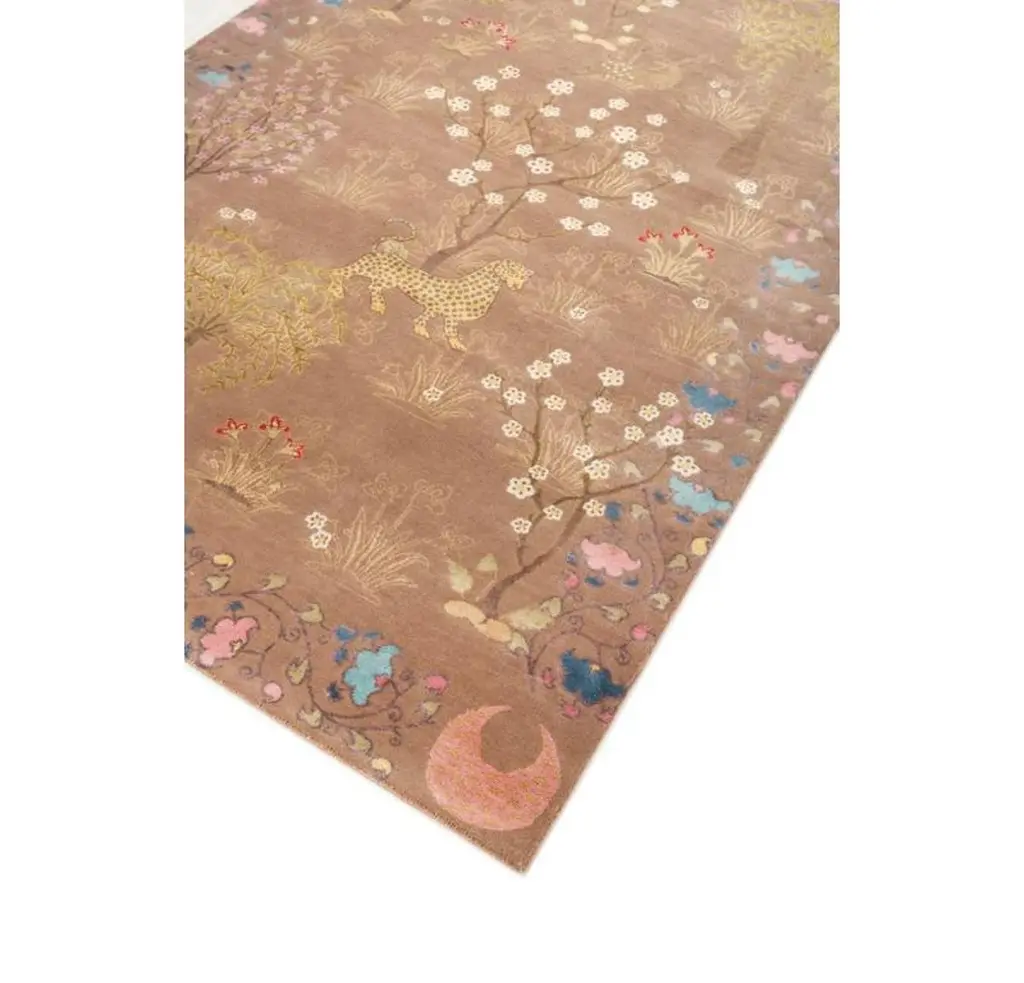 Shift your focus away from the chase and embrace the sheer joy of nature with Bahaar, a standout from the Majnun Collection designed by Pavitra Rajaram. Departing from the conventional Shikargah rug motif, which typically portrays hunters pursuing wild animals, Bahaar invites you into a realm teeming with vibrant vitality. Step into a lush forest where creatures roam freely, reveling in play and harmony. This contemporary reinterpretation pays homage to ancient Persian and Mughal design legacies while exalting the splendor and liberty of wildlife. Bahaar transcends its status as a mere rug; it serves as a bold declaration. It challenges the glorification of hunting, advocating instead for the peaceful cohabitation of humans and animals. This striking piece serves as a poignant reminder to cherish the natural world and its inhabitants, creating a sanctuary of serenity and elegance within your own living space. Offered in a variety of sizes - 274X365 cm, 244X304 cm, 183X274 cm, 183X183 cm, 152X244 cm, 123X183 cm, 92X152 cm, 76X304 cm, and 304X427 cm - Bahaar can be customized to impeccably suit your surroundings. Explore the array of possibilities at and infuse your home with this vibrant celebration of life.