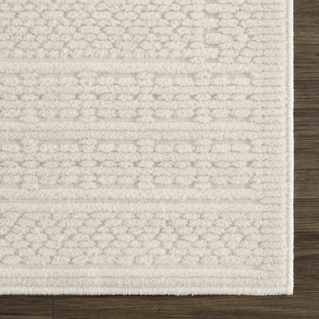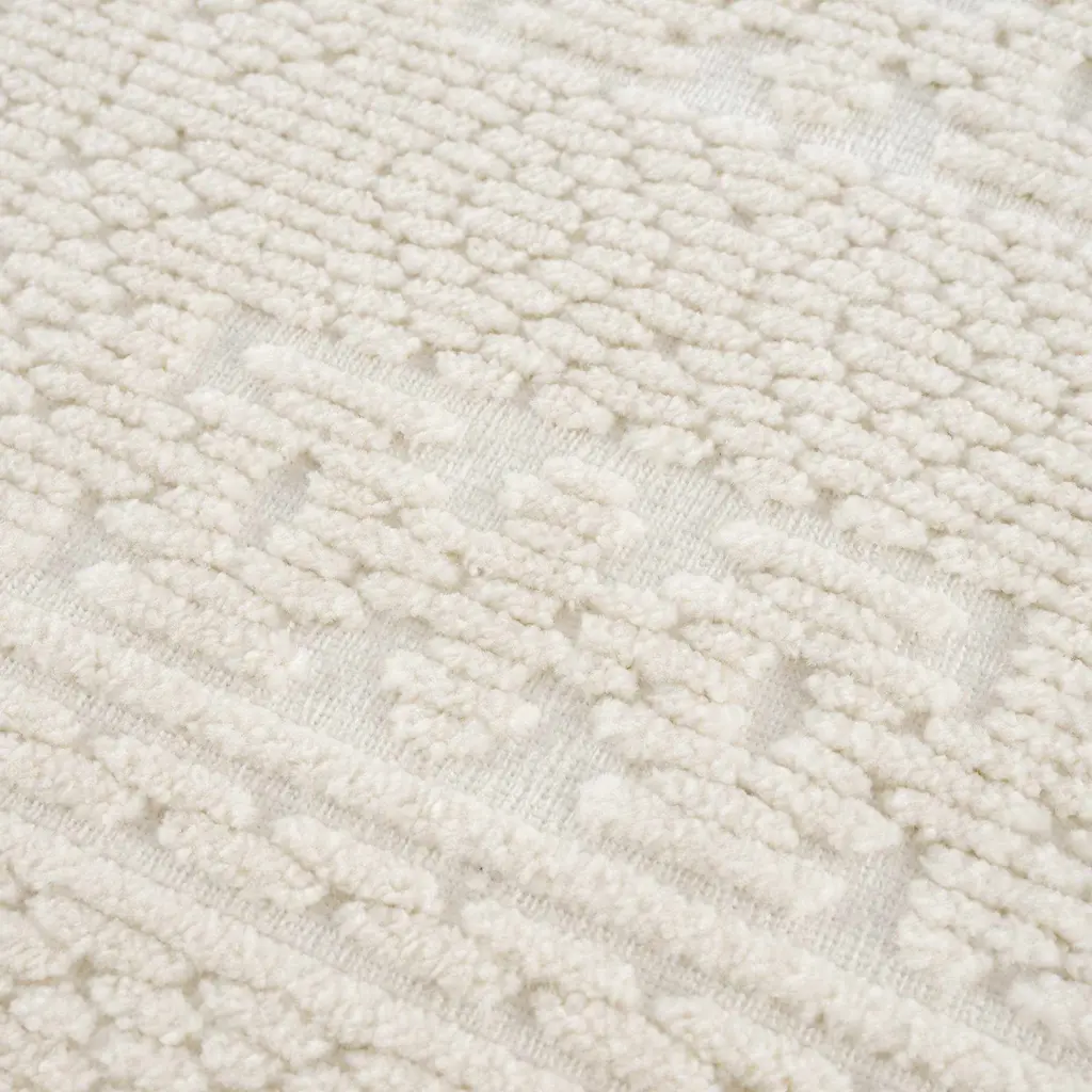 Brand: Hauteloom Collection: Bahar Colors: White, Off White Construction: Machine Woven Material: Face: 70% Polypropylene, 30% Polyester / Warp: 100% Cotton Pile: Medium Pile Pile Height: 0.31" Styles: Transitional,Traditional Machine Washable: Yes Made In: Turkey Thickness: 0.35" Price Range: $$$$$ (Most Affordable)