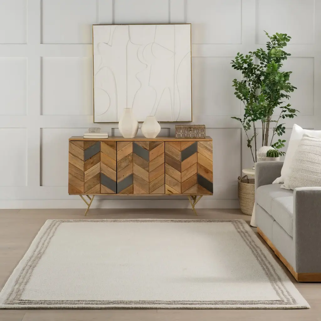 Baina Modern Bordered Rug | Ivory - 5' X 8'