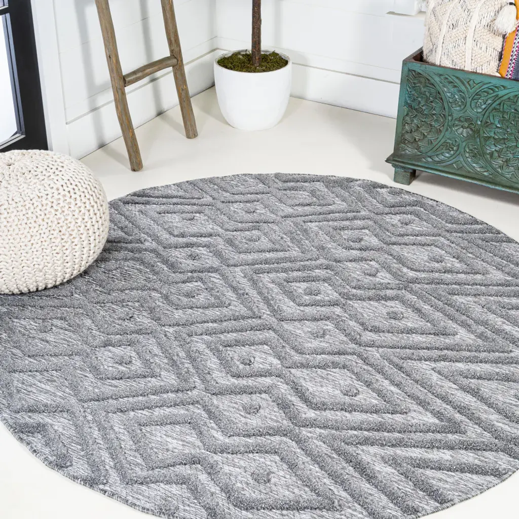 Balansat Moroccan Diamond Indoor/outdoor Dark Gray 5' Round Area Rug