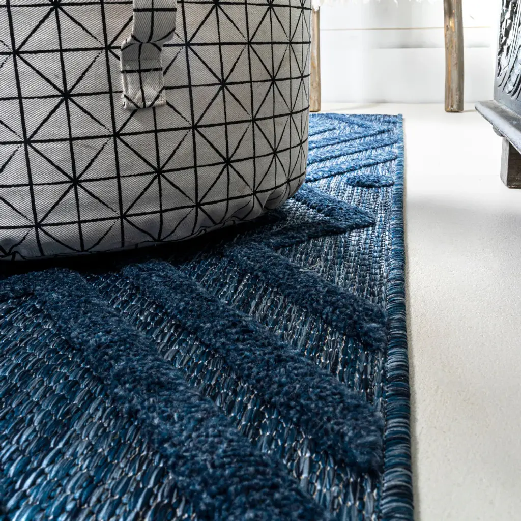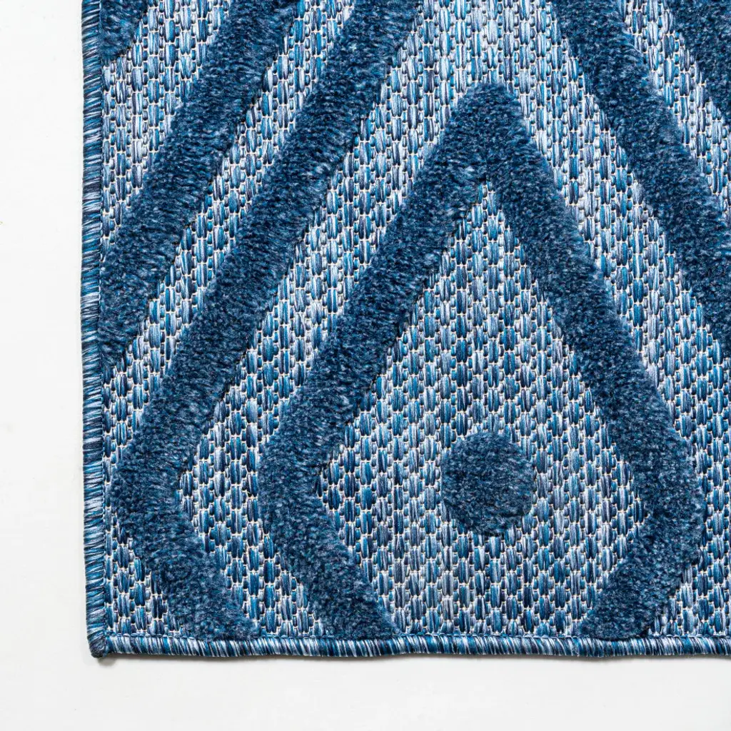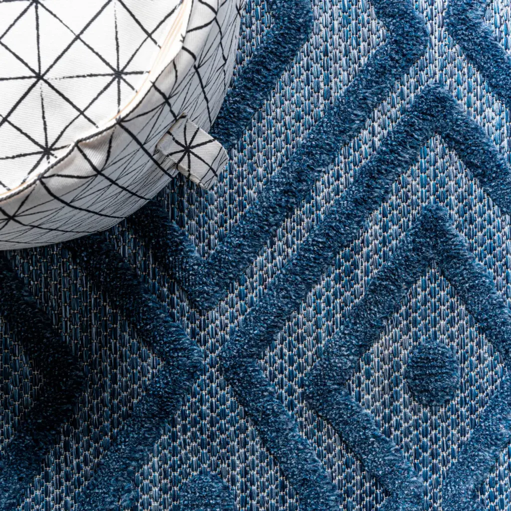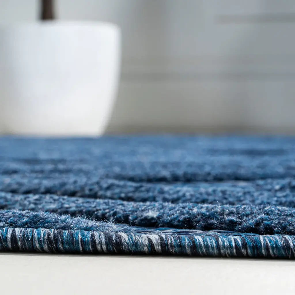Inspired by vintage Moroccan rugs, our indoor/outdoor rug adds modern tribal style to your porch, patio or sunroom. The classic Moroccan pattern has a geometric design of navy diamonds, dots and zigzags. Mingled threads give this rug a handwoven, vintage vibe that''s perfect for an entry, kitchen, hallway, living room or bedroom too. The pet-friendly and kid-proof flatweave design makes it easy to clean, and perfect for the beach house.Features:• Power loomed in a low pile that''s soft and durable, with a latex backing for added stability• Woven in shades of navy with mingled threads for a handmade effect• Made from easy-care polypropylene - just sweep, vacuum or hose down with mild soap and water• 100% Polypropylene• No backing, use of rug pad is recommended (sold separately)• Power Loomed in Turkey• Actual Dimension: 3 ft. 11 in. x 6 ft.• Color: Navy• Thickness measures: 0.43 in.• Available in multiple sizes and/or colorsRug Care:• Vacuum regularly and spot clean as needed; avoid direct and continuous exposure to sunlight; use brushless vacuum; remove spills immediately; if liquid, blot with clean, undyed cloth by pressing firmly around the spill to absorb as much as possible; for hard to remove stains, professional rug cleaning is recommended; store in a dry, well ventilated area and rotate for consistent wear• Packing and shipping may cause temporary creases in rugs, which will flatten out after a week on the floor; to expedite the process, try back-rolling your rug before laying it down, and then allow ample time for the remaining creases to relax• Please Note: Due to differences in monitors, some rug colors may vary slightly. Lengths and widths may vary from the published dimensions. Patterns may vary slightly according to shape and size selected.About us:Style your floors with JONATHAN Y. By combining fine craftsmanship and design, this New York creative studio is bringing fashion to your floors. The collection mixes sustainable organic materials, vibrant colors and trend worthy styles to create JONATHAN Y''s distinctive catalog of rugs.
