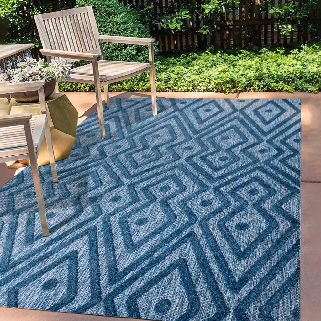 Inspired by vintage Moroccan rugs, our indoor/outdoor rug adds modern tribal style to your porch, patio or sunroom. The classic Moroccan pattern has a geometric design of navy diamonds, dots and zigzags. Mingled threads give this rug a handwoven, vintage vibe that''s perfect for an entry, kitchen, hallway, living room or bedroom too. The pet-friendly and kid-proof flatweave design makes it easy to clean, and perfect for the beach house.Features:• Power loomed in a low pile that''s soft and durable, with a latex backing for added stability• Woven in shades of navy with mingled threads for a handmade effect• Made from easy-care polypropylene - just sweep, vacuum or hose down with mild soap and water• 100% Polypropylene• No backing, use of rug pad is recommended (sold separately)• Power Loomed in Turkey• Actual Dimension: 7 ft. 9 in. x 10 ft.• Color: Navy• Thickness measures: 0.43 in.• Available in multiple sizes and/or colorsRug Care:• Vacuum regularly and spot clean as needed; avoid direct and continuous exposure to sunlight; use brushless vacuum; remove spills immediately; if liquid, blot with clean, undyed cloth by pressing firmly around the spill to absorb as much as possible; for hard to remove stains, professional rug cleaning is recommended; store in a dry, well ventilated area and rotate for consistent wear• Packing and shipping may cause temporary creases in rugs, which will flatten out after a week on the floor; to expedite the process, try back-rolling your rug before laying it down, and then allow ample time for the remaining creases to relax• Please Note: Due to differences in monitors, some rug colors may vary slightly. Lengths and widths may vary from the published dimensions. Patterns may vary slightly according to shape and size selected.About us:Style your floors with JONATHAN Y. By combining fine craftsmanship and design, this New York creative studio is bringing fashion to your floors. The collection mixes sustainable organic materials, vibrant colors and trend worthy styles to create JONATHAN Y''s distinctive catalog of rugs.