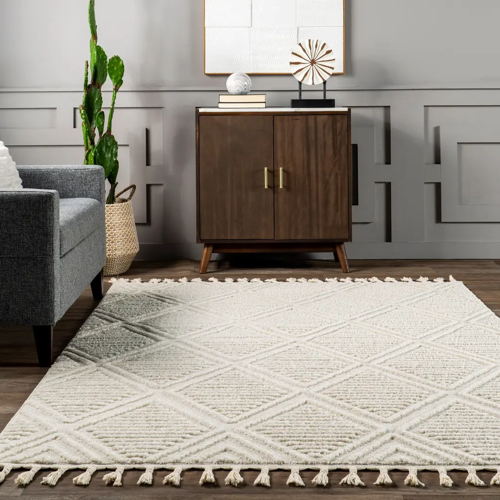 Diamonds and texture. What's not to love? Designed to stand out in any space, the Balboa Rug is a must-have. Its neutral hues are very on-trend, and its raised, graphic pattern adds visual interest for days. Whether you're shopping for your living room, bedroom, or home office space, this rug is it.