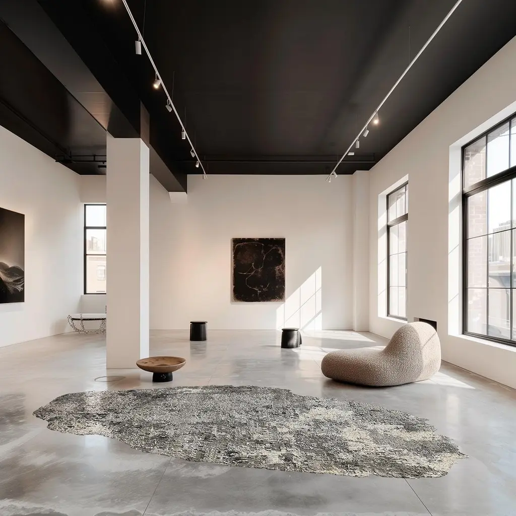 Bamboo Silk Celestial Object B-T87 Rug by HENZEL STUDIODimensions: W 260 x L 280 cm.Materials: Wool, Mohair & Silk.In 'Le Météore de la Nuit', Calle Henzel unveils a series of monumental handmade rug designs, each meticulously crafted in his distinctive style. Central to Henzel's oeuvre is the concept of balance and the principles of physics, inviting viewers to reflect on the intricate interplay between science and art. Utilizing innovative free-form techniques with precisely cut wool, mohair, and silk at varying levels, each rug embodies Henzel's refined artistic language developed over three decades. His organic aesthetic is characterized by architectural lines and abstract forms shaped by the laws of gravity, standing as testaments to his unique ability to intertwine art, science, and philosophy in a profound manner. Henzel's creations serve dual purposes, suitable for both floor coverings and wall sculptures, all custom-made to clients' specific measurements. These pieces transcend traditional boundaries, merging art and science, and enhancing discerning contemporary interiors with a brilliant and thought-provoking aesthetic experience. Over the years, Henzel's work has been showcased in prestigious venues and museums worldwide, earning recognition for its innovative approach.Henzel Studio is a Swedish family company, based in Gothenburg, founded in 1999 by the artist Calle Henzel and his wife Asa. Henzel produces luxury carpets featuring exclusive designs of contemporary art, signed by big names of art, graphics, design and of international photography: Scott Campbell, Helmut Lang, Richard Prince and many others. Crossing the border between craft, art and design, rugs by Henzel Studio are distributed through the best galleries in the world of design and are handmade using 100% New Zealand wool, one of the purest natural fibers in the world, where the material is dyed exclusively with ecological pigments from Switzerland. Calle Henzel experimented with a new form of art where form, finishes and treatments, combined with high quality standards, they ensure the carpets as a true work of art, an investment intended to last forever.