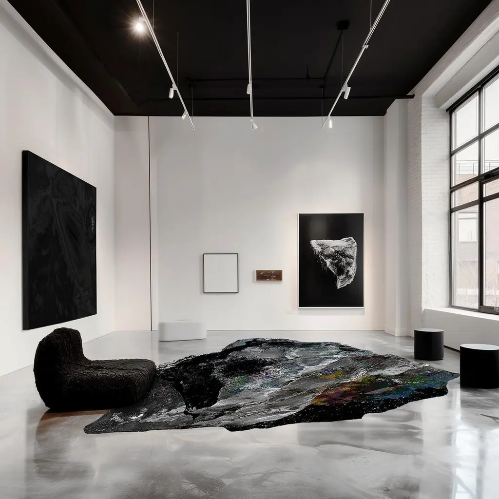Bamboo Silk Celestial Object K-Y11 Rug by HENZEL STUDIODimensions: W 260 x L 280 cm.Materials: Wool, Mohair & Silk.In 'Le Météore de la Nuit', Calle Henzel unveils a series of monumental handmade rug designs, each meticulously crafted in his distinctive style. Central to Henzel's oeuvre is the concept of balance and the principles of physics, inviting viewers to reflect on the intricate interplay between science and art. Utilizing innovative free-form techniques with precisely cut wool, mohair, and silk at varying levels, each rug embodies Henzel's refined artistic language developed over three decades. His organic aesthetic is characterized by architectural lines and abstract forms shaped by the laws of gravity, standing as testaments to his unique ability to intertwine art, science, and philosophy in a profound manner. Henzel's creations serve dual purposes, suitable for both floor coverings and wall sculptures, all custom-made to clients' specific measurements. These pieces transcend traditional boundaries, merging art and science, and enhancing discerning contemporary interiors with a brilliant and thought-provoking aesthetic experience. Over the years, Henzel's work has been showcased in prestigious venues and museums worldwide, earning recognition for its innovative approach.Henzel Studio is a Swedish family company, based in Gothenburg, founded in 1999 by the artist Calle Henzel and his wife Asa. Henzel produces luxury carpets featuring exclusive designs of contemporary art, signed by big names of art, graphics, design and of international photography: Scott Campbell, Helmut Lang, Richard Prince and many others. Crossing the border between craft, art and design, rugs by Henzel Studio are distributed through the best galleries in the world of design and are handmade using 100% New Zealand wool, one of the purest natural fibers in the world, where the material is dyed exclusively with ecological pigments from Switzerland. Calle Henzel experimented with a new form of art where form, finishes and treatments, combined with high quality standards, they ensure the carpets as a true work of art, an investment intended to last forever.