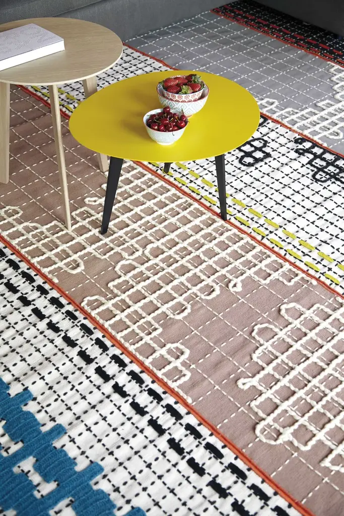 Fibre composition: 100% new wool. Velcro 100% polyester.Total weight approx: 2'3 kg/m² - 0'47 lbs/ft²Total height approx: 8 mm.Manufacturing technique: MIX OF TECHNIQUES (HAND LOOM+EMBROIDERY+CROCHET).Modularity taken to the limit. All the pieces in the BANDAS collection can be interchanged.An ingenious system, designed by the extraordinary Patricia Urquiola, allows the collection to be adapted to any space, any personality and any mood.Life is change and BANDAS will change with you.