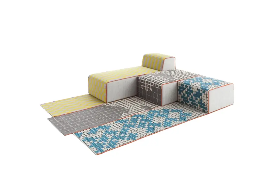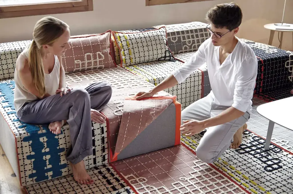 Fibre composition: 100% new wool. Velcro 100% polyester.Total weight approx: 2'3 kg/m² - 0'47 lbs/ft²Total height approx: 8 mm.Manufacturing technique: MIX OF TECHNIQUES (HAND LOOM+EMBROIDERY+CROCHET).Modularity taken to the limit. All the pieces in the BANDAS collection can be interchanged.An ingenious system, designed by the extraordinary Patricia Urquiola, allows the collection to be adapted to any space, any personality and any mood.Life is change and BANDAS will change with you.