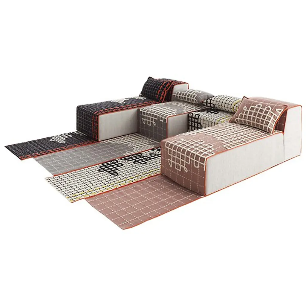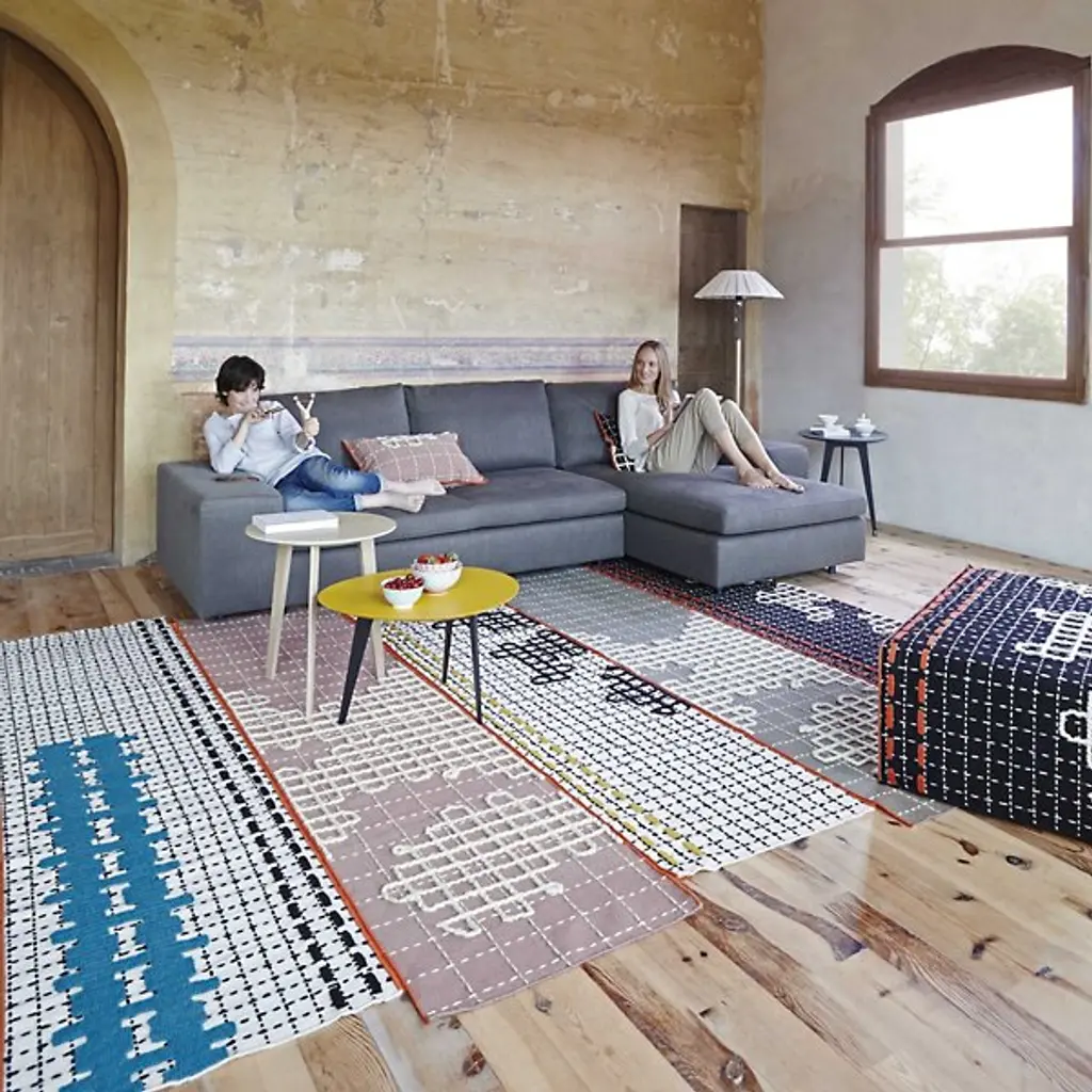 The twisty lines and dashes, numerous colors and textures make the Gan Rugs Bandas Small Pouf D a perfectly unique accent to add to a Bandas (or any) living space. The cover is made entirely out of new wool yarns that are variably hand loomed, embroidered and crocheted. Designed by Patricia Urquiola.