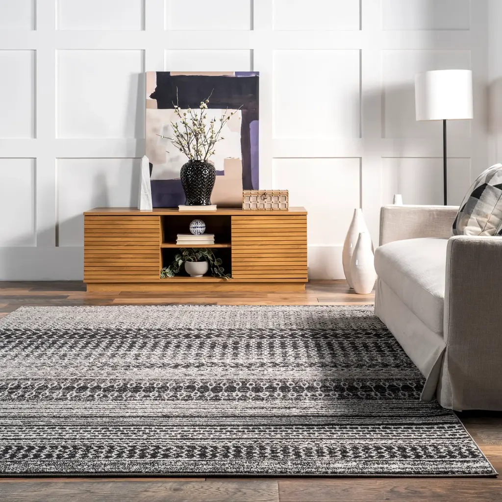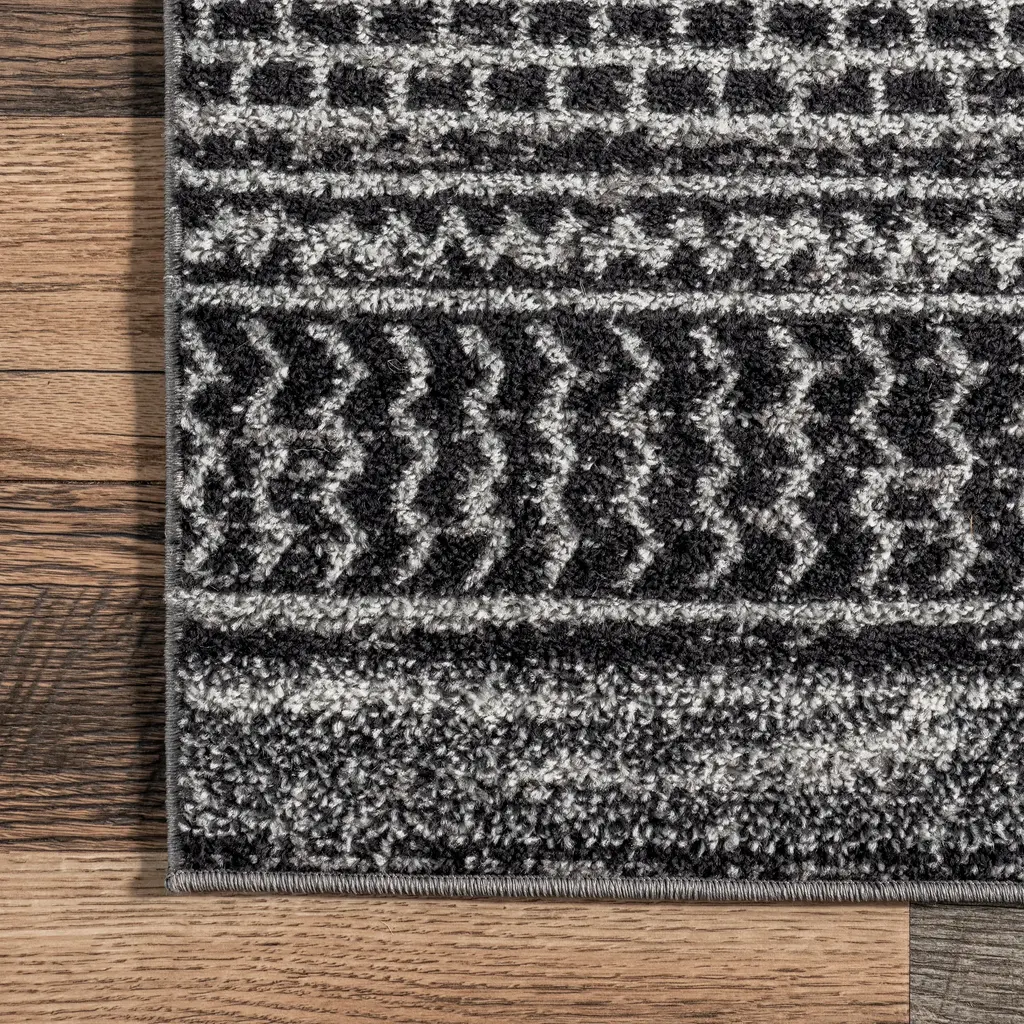 Banded Abacus And Stripes Rug | Dark Grey - 5' X 5'