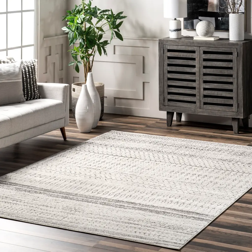 Strike up the bands! This inspired floor covering provides a light touch of pattern where its most needed, in the form of patterend rug bands that intersect in direction. Made of durable powerloomed materials, this rug will be a trusted piece in your home decor. This cozy area rug lends a low-maintenance appeal to any surroundings. Choose from an array of colors and sizes and kick those feet up with our pet-friendly and easy to clean area rugs.