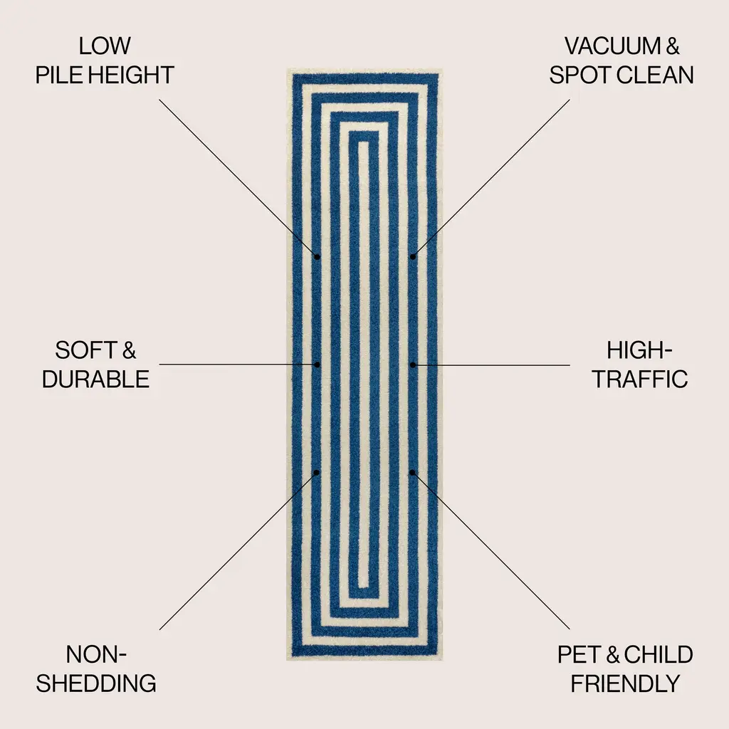 Our classic mitre-stripe design is welcome anywhere from the farmhouse to the beach. Woven from soft synthetic fibers, the crisp woven stripes turn the corners to frame the rug. Add geometric punch to your living room, dining room, bedroom or entry with this eye-catching, easy-care rug.