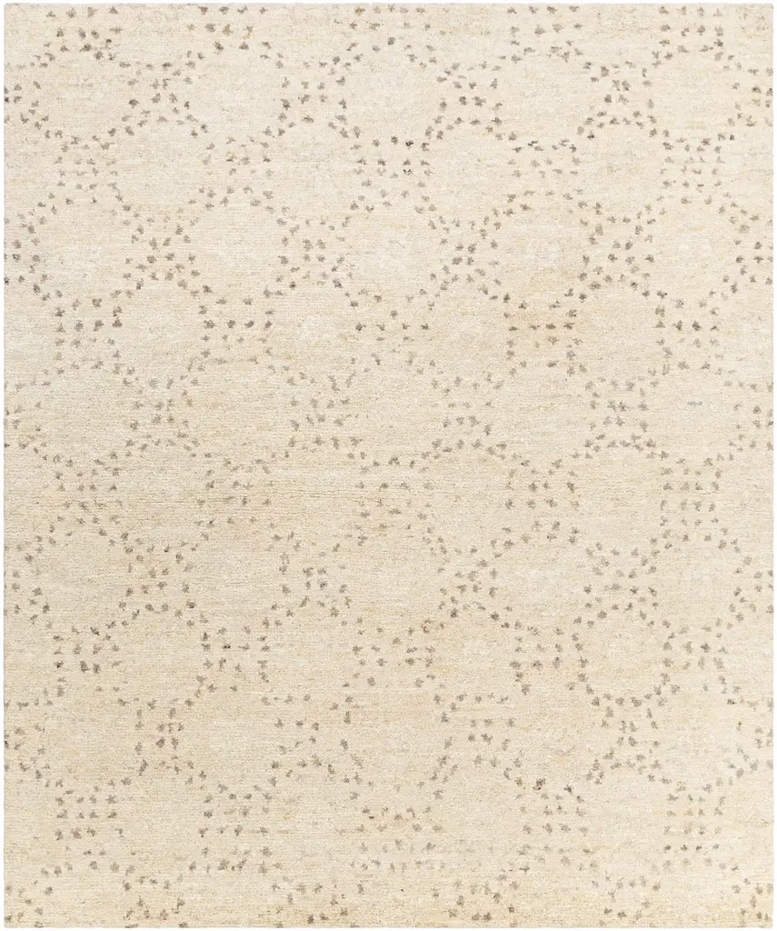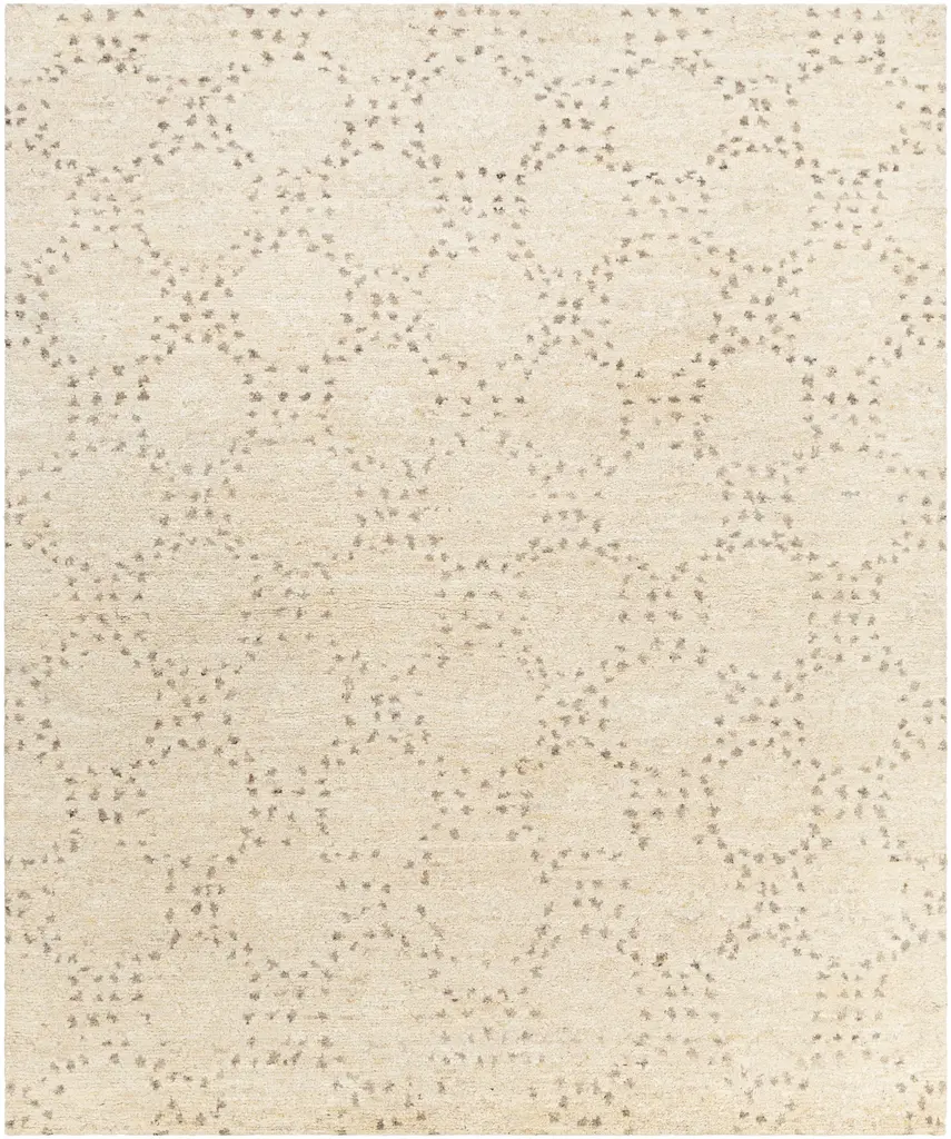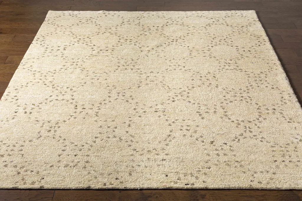 Collection: Banksia Colors: Cream, Dark Brown, Charcoal, Black, Ivory, Dark Red Construction: Hand Knotted Material: 90% Wool,10% Polyester Pile: Medium Pile Pile Height: 0.5" Styles: Contemporary Made In: India Thickness: 0.75" Price Range: $$$$$ (Premium)