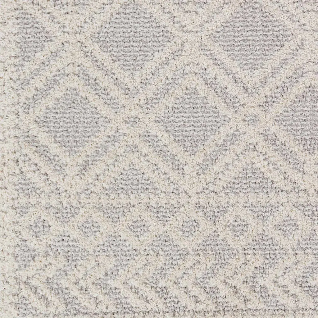 Collection: Bansalan Colors: Cream, Medium Gray Construction: Machine Woven Material: 70% Polyester, 30% Polypropylene Pile: High Pile Pile Height: 0.71" Styles: Transitional,Bohemian Made In: Turkey Thickness: 0.79" Fringe Length: 4.3" Price Range: $$$$$ (Most Affordable)
