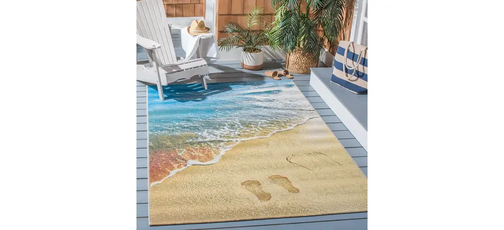 Lush, tropical sensations come to contemporary patio decor in Safavieh's Barbados Footprint Indoor/Outdoor Area Rug Collection. Barbados' rugs turn entertainment spaces and outdoor leisure-living areas into at-home resorts with their vivid colors and scenic designs. Made using soft synthetic yarns for lasting charm and color season after season.
