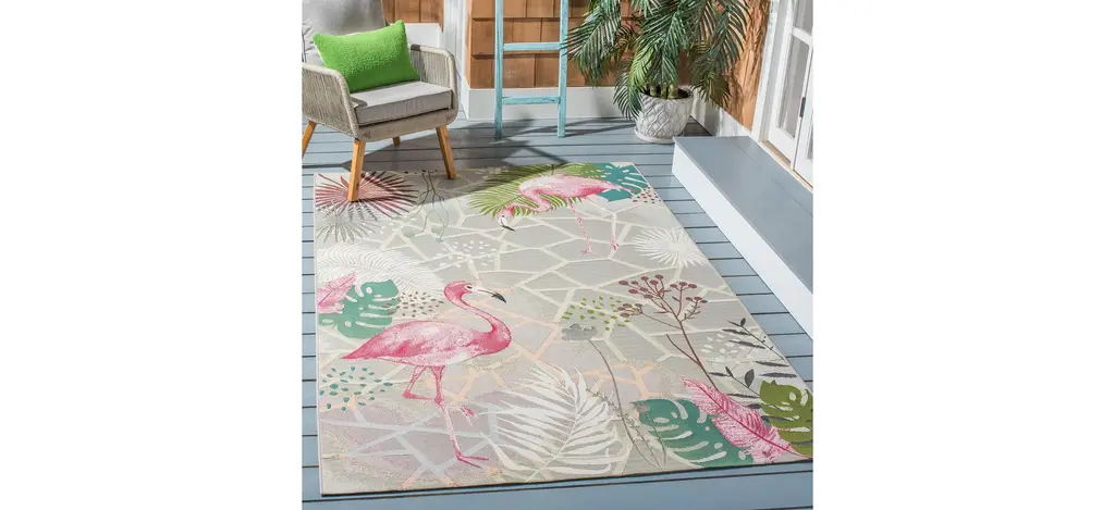 Lush, tropical sensations come to contemporary patio decor in Safavieh's Barbados Grove Indoor/Outdoor Area Rug Collection. Barbados' rugs turn entertainment spaces and outdoor leisure-living areas into at-home resorts with their vivid colors and scenic designs. Made using soft synthetic yarns for lasting charm and color season after season.
