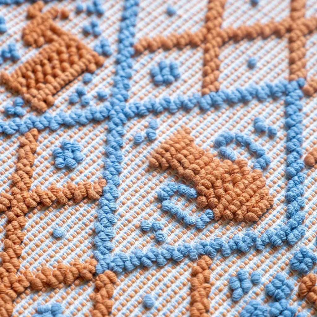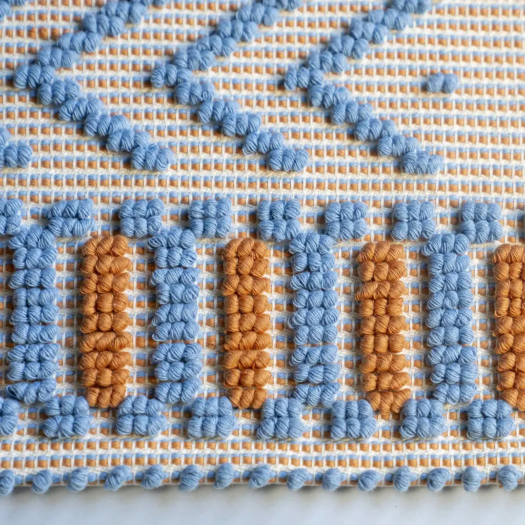 The Barbagia collection has been designed by Serena Confalonieri and produced by Tessile M&Dusa during the designer's residency in Samugheo, Sardinia, on the occasion of ArtiJanus/ArtiJanas, a sperimental project promoted by the Sardinia region and Triennale Milano to stimulate the intersection between young designers and local craftsmen.The Barbagia collection consists of a series of textile elements in cotton, from pillows to rugs and carpets, made with a technique called "a pibiones", which is typical of the region. The decorative motifs recall the Sardinian heritage: nuragic bronze statuettes, myrtle plants and terracotta jugs. All the objects part of the Barbagia collection follow the weaving pattern of the Sardinian "bisaccia", which is a fabric bag used by shepherds and farmers when going to pasture. The initials of the designer and the weaver have been embroidered at the four angles of every object part of the collection.