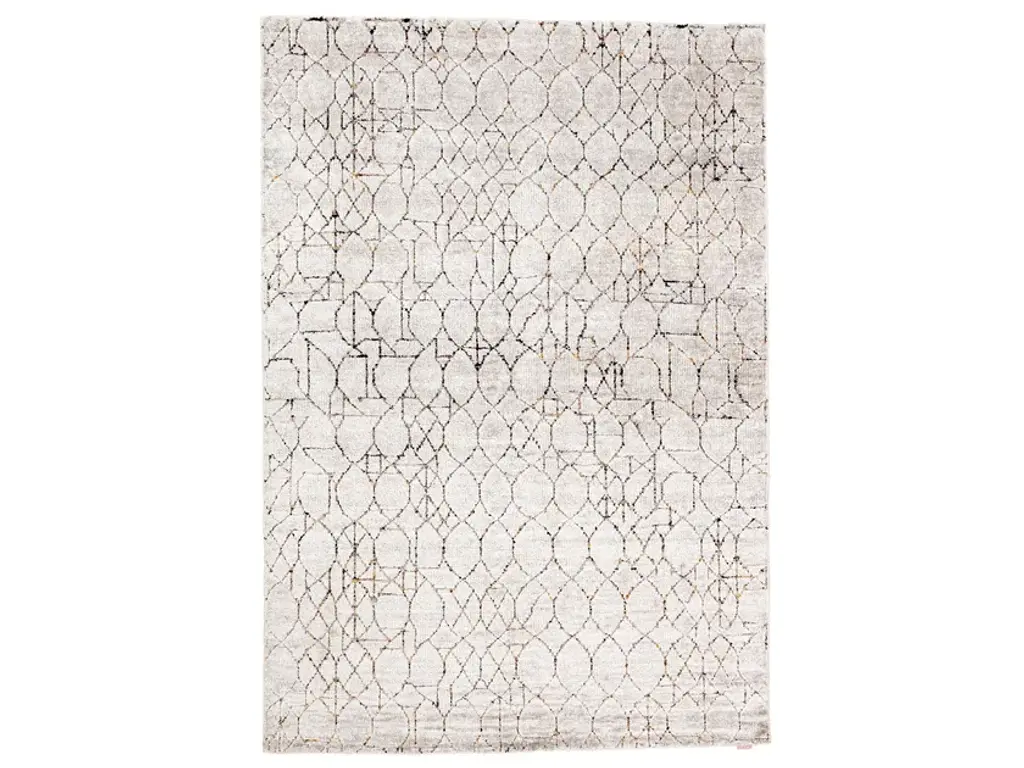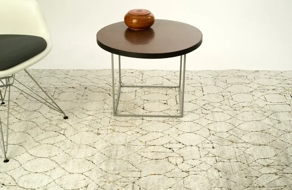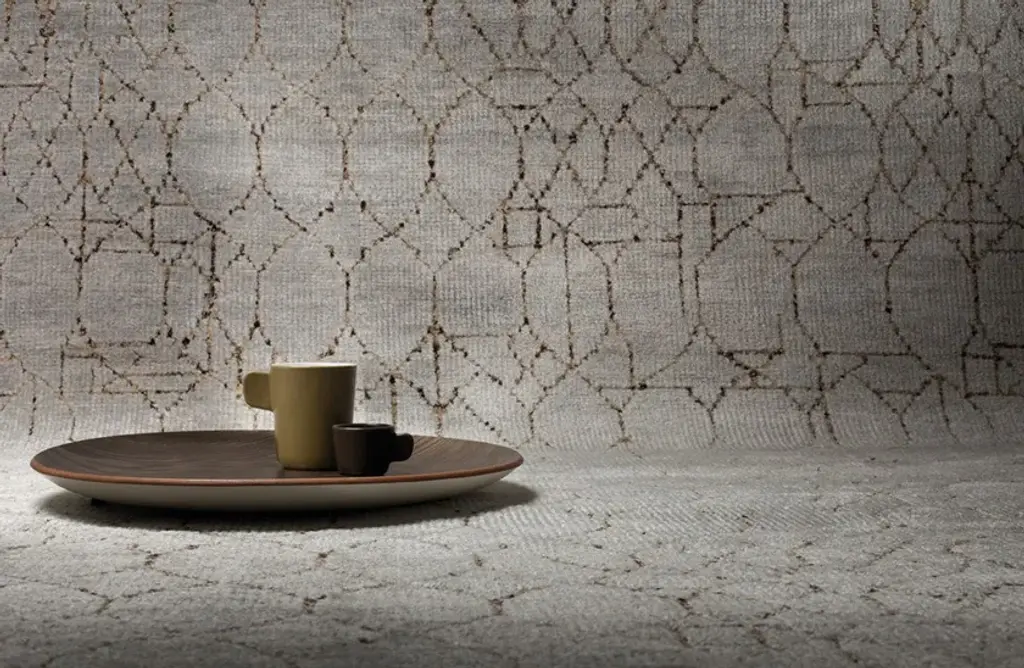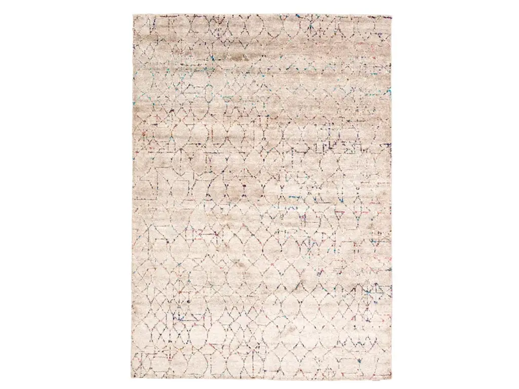Handknotted rug, persian technique, in bamboo silk and recycled sari silk. The richness of the colors of the women's sari, reelaborated from the textile industry scrapes, in a blend of colorful yarns. Barbès is a regular design whose pattern is casually interrupted by the color irregularities. Colors CR|LB (cream | light brown)LG|LB (light grey | light brown)TT|VC (warm grey | various colors) Technical information Quality: Handknotted, bamboo silk and recycled sari silk. Thickness: 7 mm approx. Weight: 3,6 Kg/sqm approx.The configuration (size + color) must be completed to obtain the final price of the product.The knotting technique is a completely manual method, by which the wool is firmly attached to the warp by knots. The type of knot and its thickness differentiate the types of rugs made with this elaborate manual method. The value, quality and durability of the rug is directly proportional to the number of knots employed.The hand knotting allows for complex designs, its main characteristics are meticulous workmanship, the high number of knots per square metre and the wide range of colour combinations.The Indo-Tibetan knotting technique is particular, brought to India by Tibetan refugees, while the “sumak” knotting technique has Persian origins.