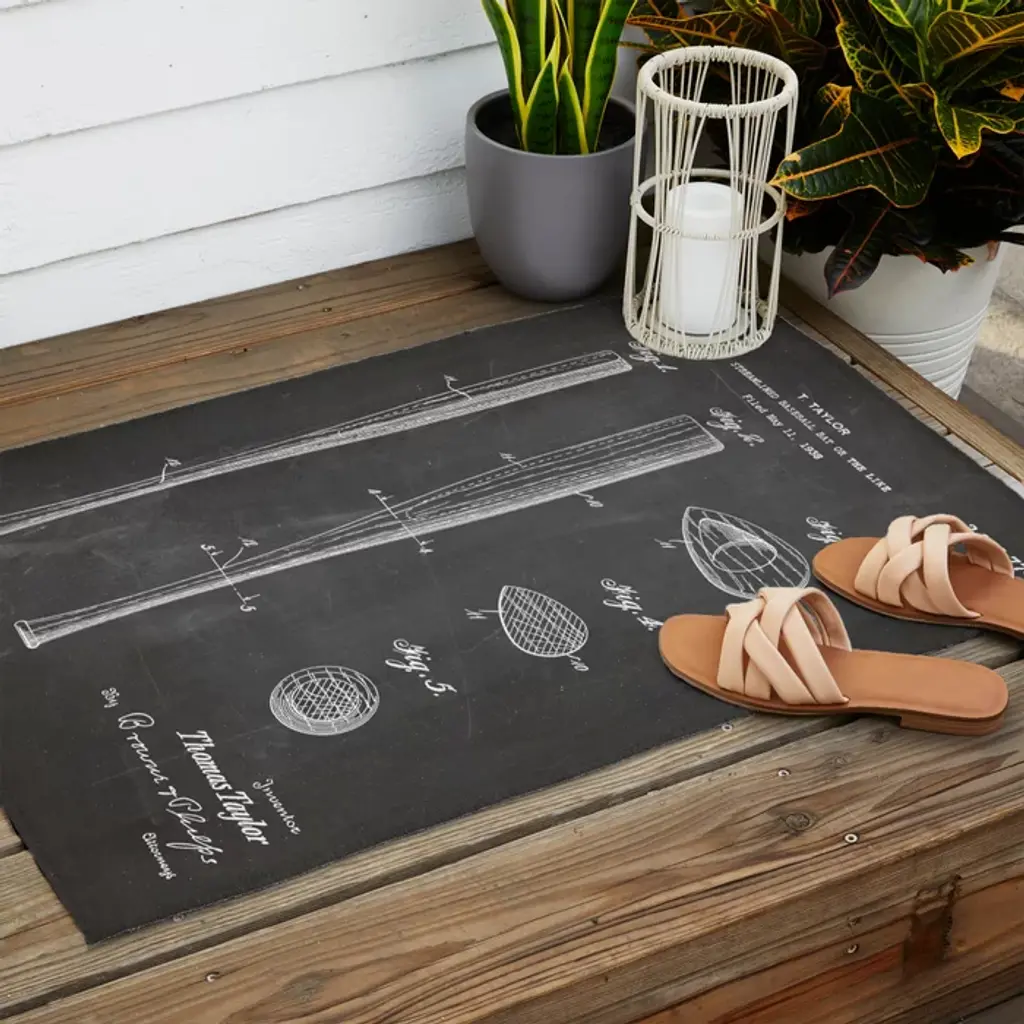 Baseball Bat Patent - Baseball Art - Black Chalkboard Outdoor Rug