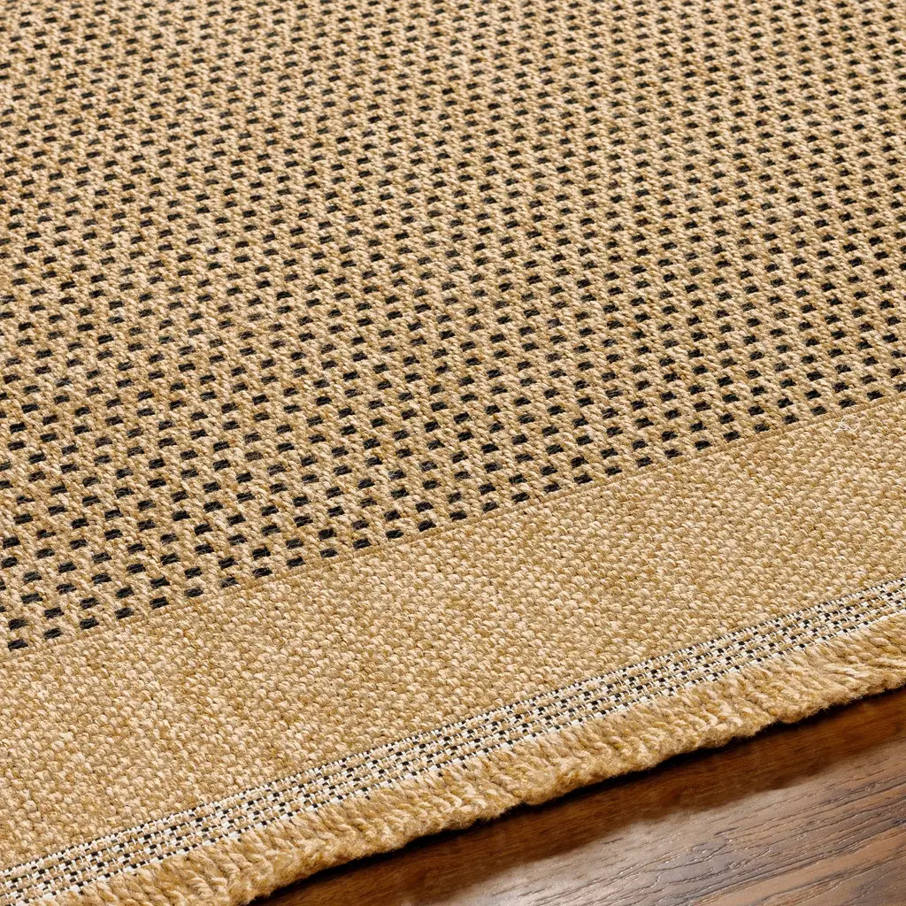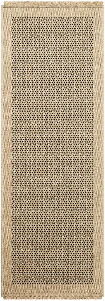 Collection: Bast Colors: Light Beige, Dark Brown, Camel, Medium Gray, Medium Brown Construction: Machine Woven Material: 100% Polypropylene Pile: No Pile Styles: Transitional,Traditional Outdoor Safe: Yes Made In: Turkey Thickness: 0.39" Fringe Length: 1" Price Range: $$$$$ (Most Affordable)