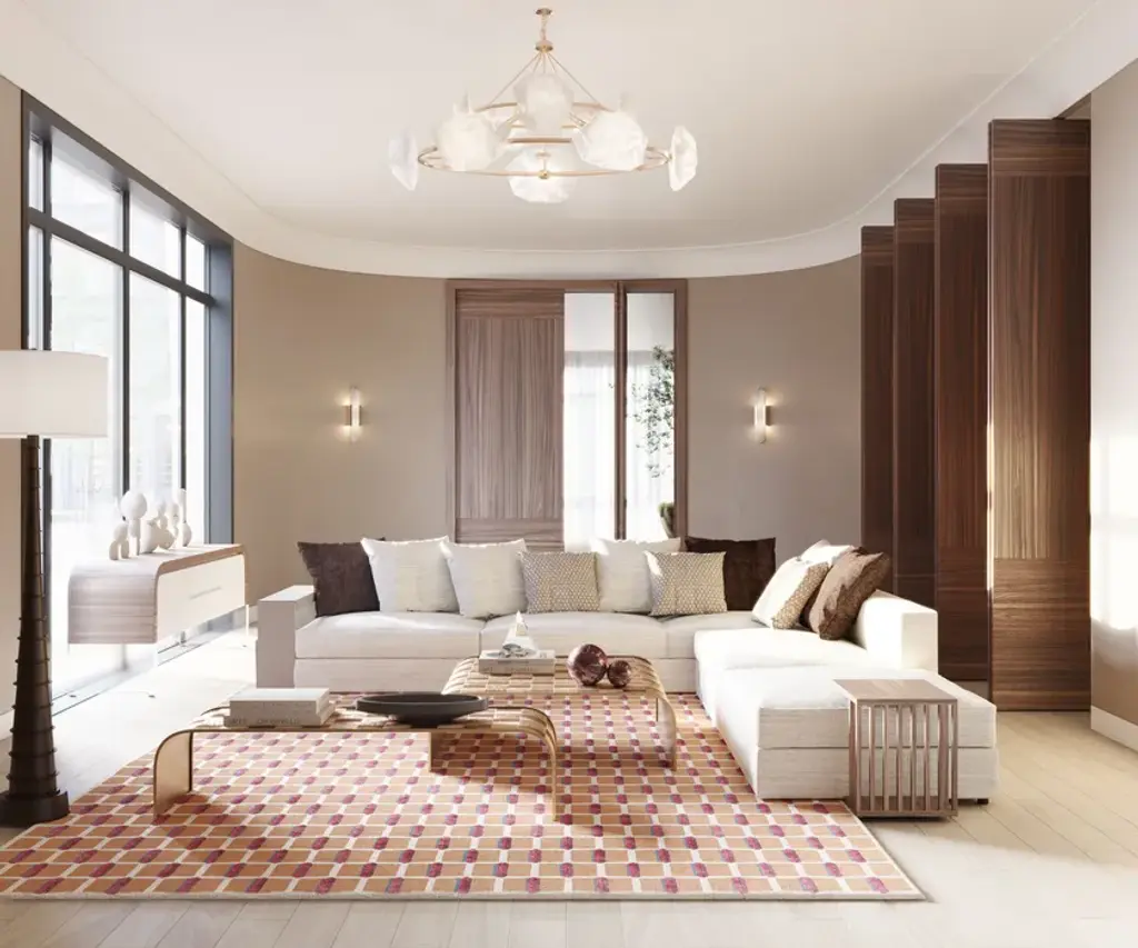 Material: Wool, SilkKnot Density: 60 knots/inch²Pile Height: 6mmTechnique: Hand-knottedCustom sizes and colors on requestThe Pattern Collection is inspired by the development of architectural styles throughout history. Six unique styles, ranging from Roman to Stick, are represented in the collection, each exhibiting its own elegant and sometimes sensational characteristics. This hand-knotted collection offers various color options, allowing you to choose the perfect fit for your space.Googie, the headliner design of the collection, embodies the super aesthetic of 1950s and '60s American retro-futurism, a time of unparalleled innovation and technological advancement. The Googie rug contains 87% Wool and 13% Silk and has a knot density of 60 knots/inch². Different colorful geometries are an invitation to play with furniture elements. The shapes come out for their color dominance while the pile height is standard, at 8 mm.