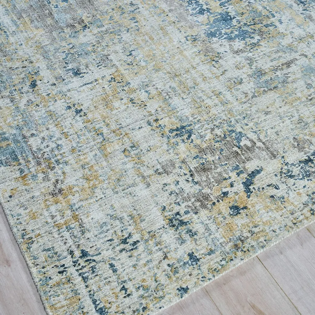Hand loomed of a combination of wool and bamboo silk, an overlapping use of contrasting colors creates a look that is bold and dramatic. Its abstract design in contrasting colors makes it a stunning addition to any interior space.
