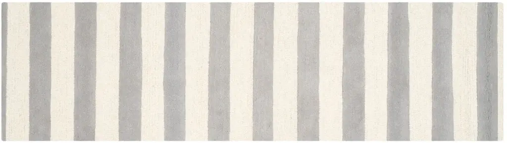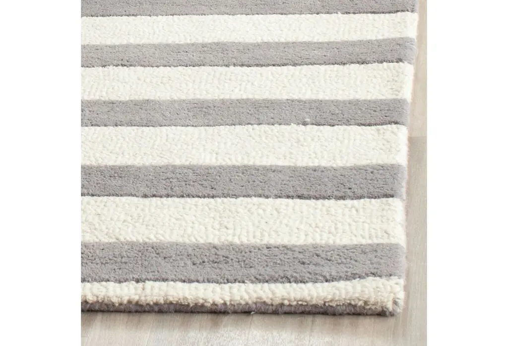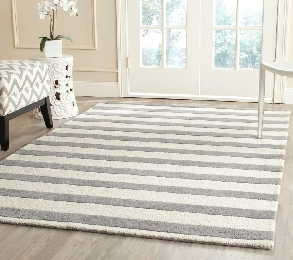 Ideal for energizing a space, this hand-tufted wool rug displays classic stripes in versatile gray and ivory. A rug pad is recommended to keep this securely in place and provide an extra layer of cushioning.