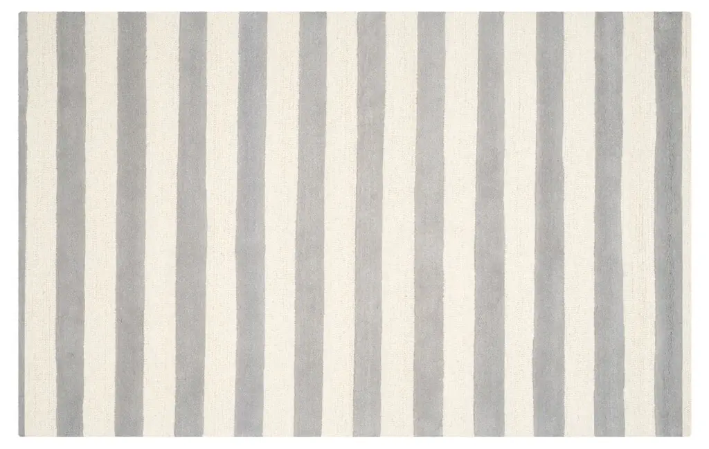 Ideal for energizing a space, this hand-tufted wool rug displays classic stripes in versatile gray and ivory. A rug pad is recommended to keep this securely in place and provide an extra layer of cushioning.