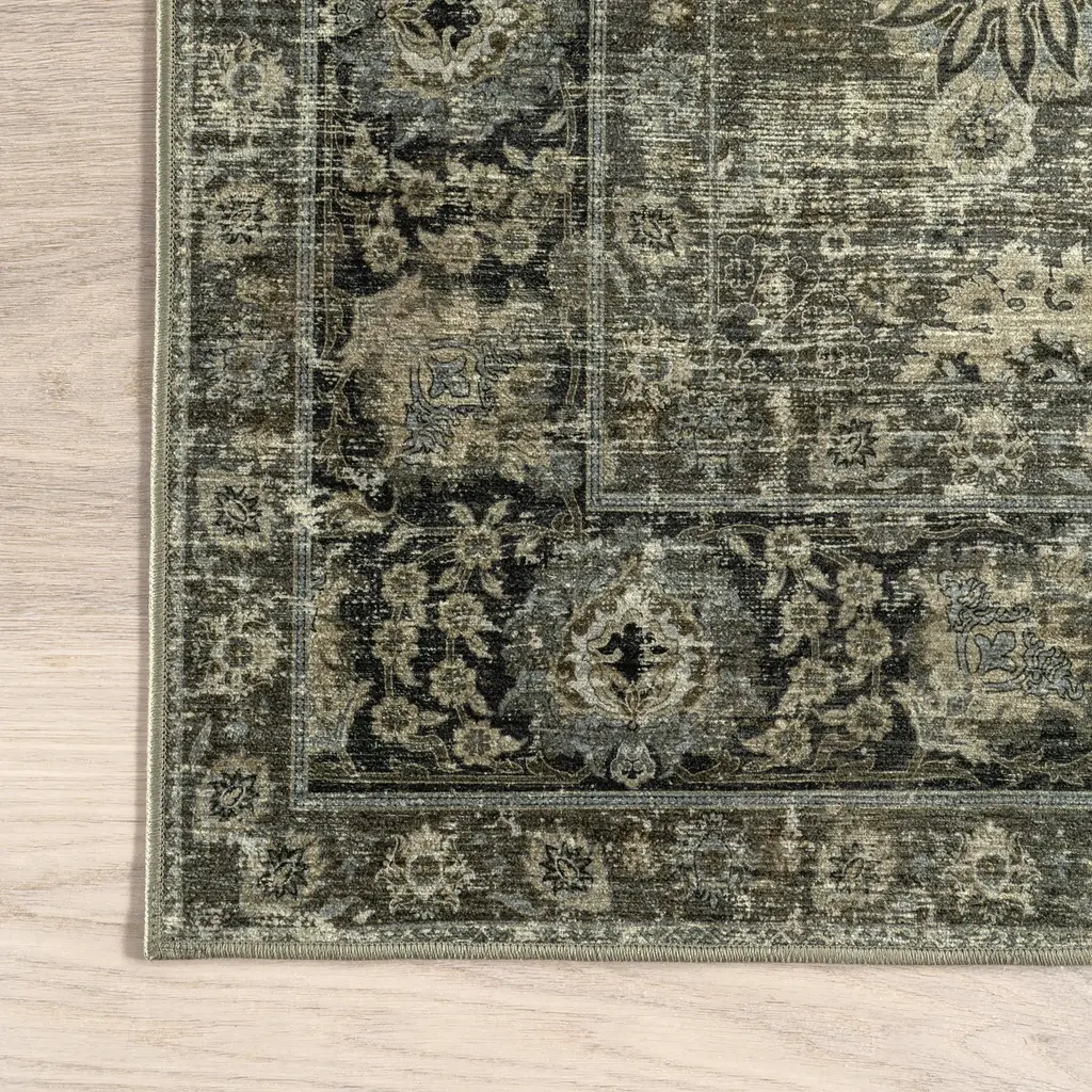 Bayberry Spill Proof Vintage Washable Rug | Green Grey - 6'