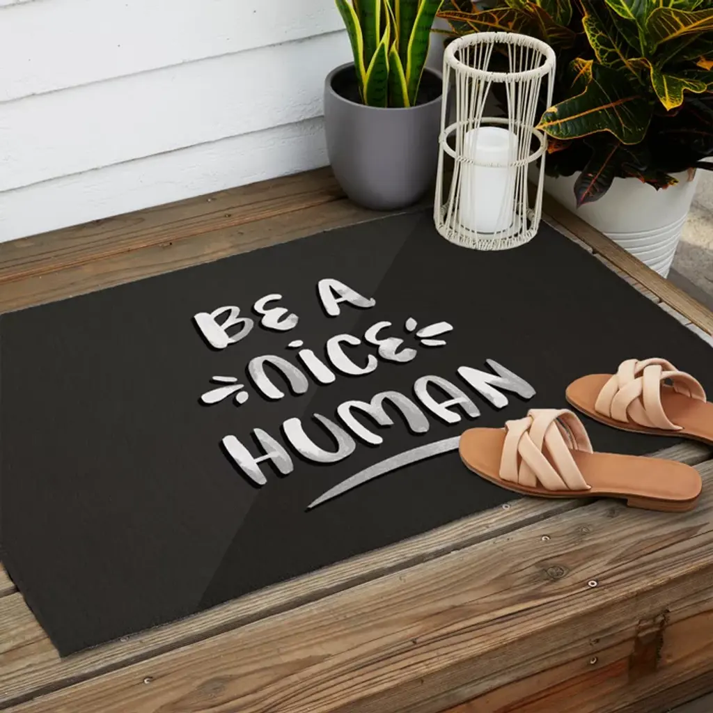 Be A Nice Human – White Type On Black Palette Outdoor Rug