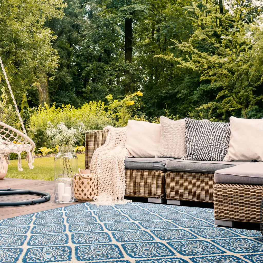 With a motif inspired by Indian block prints, this durable rug will bring time-honored finesse to your patio, porch, entry, or any other high-traffic area, indoors or out. In addition to being nonshedding, the rug is especially easy to clean: You can even wash it down with a hose. Latex backing adds to its longevity. The rug is Oeko-Tex Standard 100 certified, meaning it was tested for harmful substances.