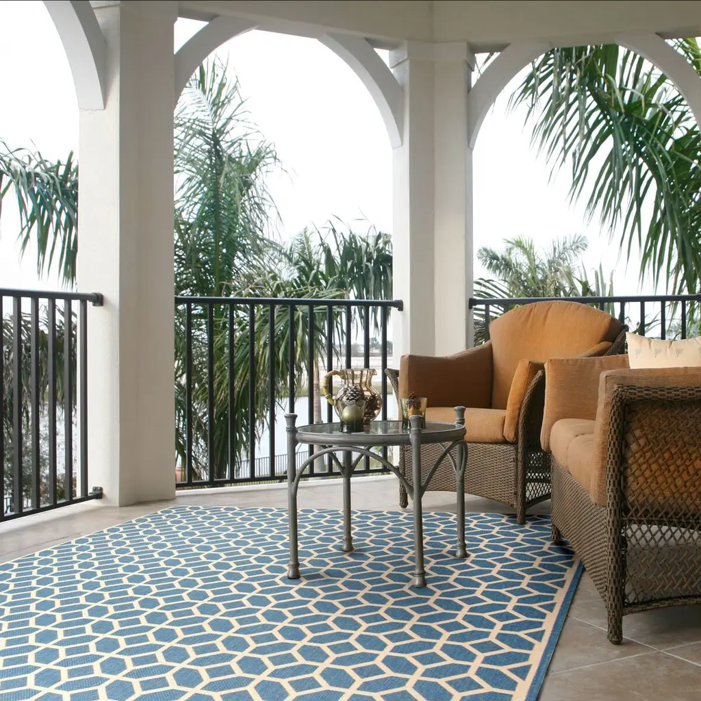With its overall geometric pattern, this durable rug will bring tailored finesse to a porch, patio, entry, or den. In addition to being nonshedding, the rug is especially easy to clean: You can even wash it down with a hose. Latex backing adds to its longevity. The rug is Oeko-Tex Standard 100 certified, meaning it was tested for harmful substances.