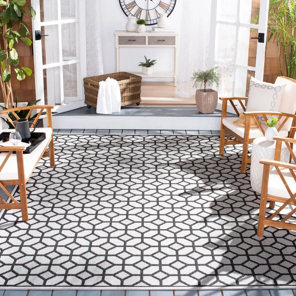 With its overall geometric pattern, this durable rug will bring tailored finesse to a porch, patio, entry, or den. In addition to being nonshedding, the rug is especially easy to clean: You can even wash it down with a hose. Latex backing adds to its longevity. The rug is Oeko-Tex Standard 100 certified, meaning it was tested for harmful substances.