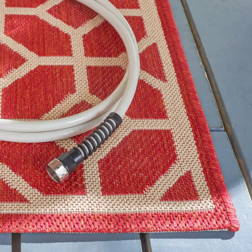 With its overall geometric pattern, this durable rug will bring tailored finesse to a porch, patio, entry, or den. In addition to being nonshedding, the rug is especially easy to clean: You can even wash it down with a hose. Latex backing adds to its longevity. The rug is Oeko-Tex Standard 100 certified, meaning it was tested for harmful substances.