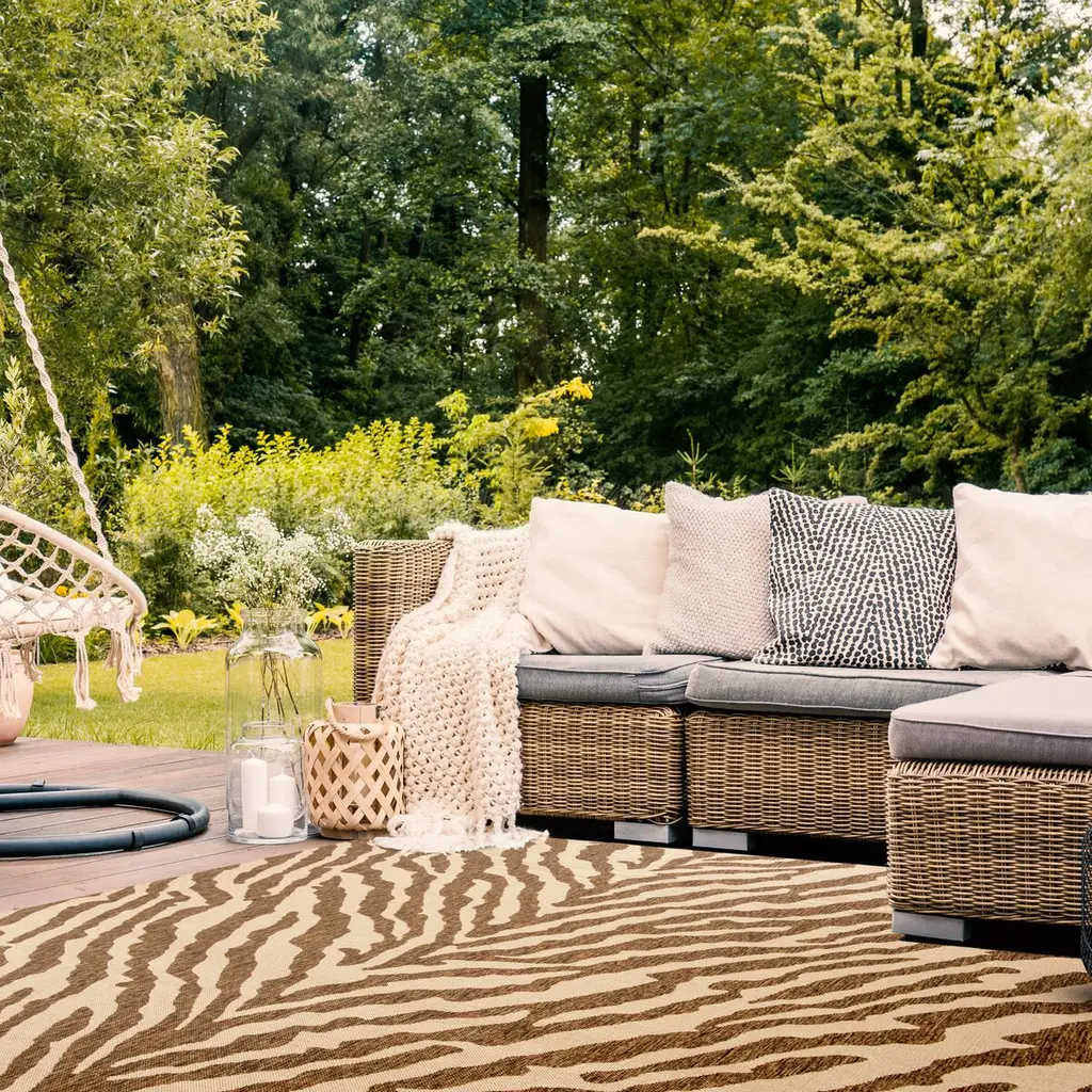This animal-stripe rug will bring timeless glamour to your porch, patio, entry, or any other high-traffic space, indoors or out. In addition to being nonshedding, the rug is especially easy to clean: You can even wash it down with a hose. Latex backing adds to its longevity. The rug is Oeko-Tex Standard 100 certified, meaning it was tested for harmful substances.