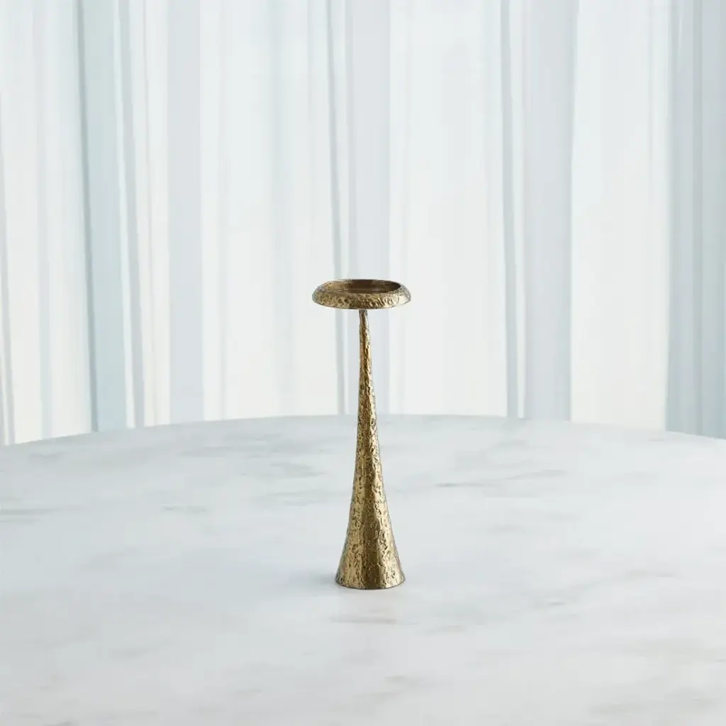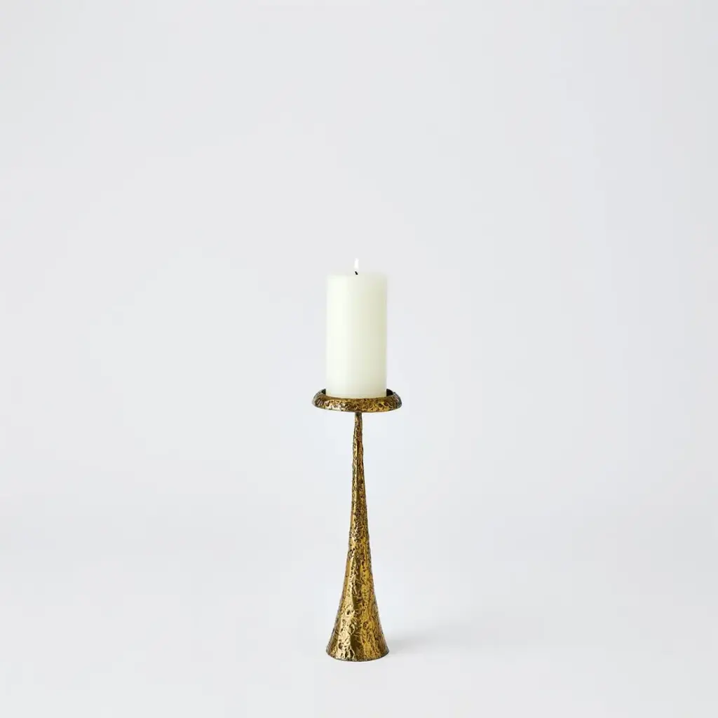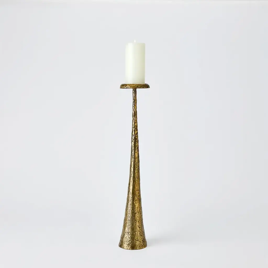 Uniquely tapered and textured finish, our Beacon Candle Holders are cast from iron and finished in antique brass. Offered in three sizes, each holding a 3ftDia. pillar candle From a fashion forward perspective, Global Views offers accessories, furniture, statement lighting, and an assortment of rugs and mirrors to add beauty and joy to your home.