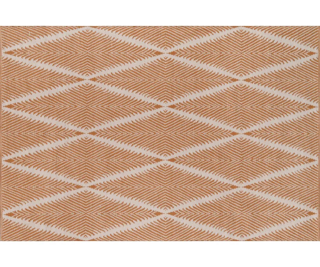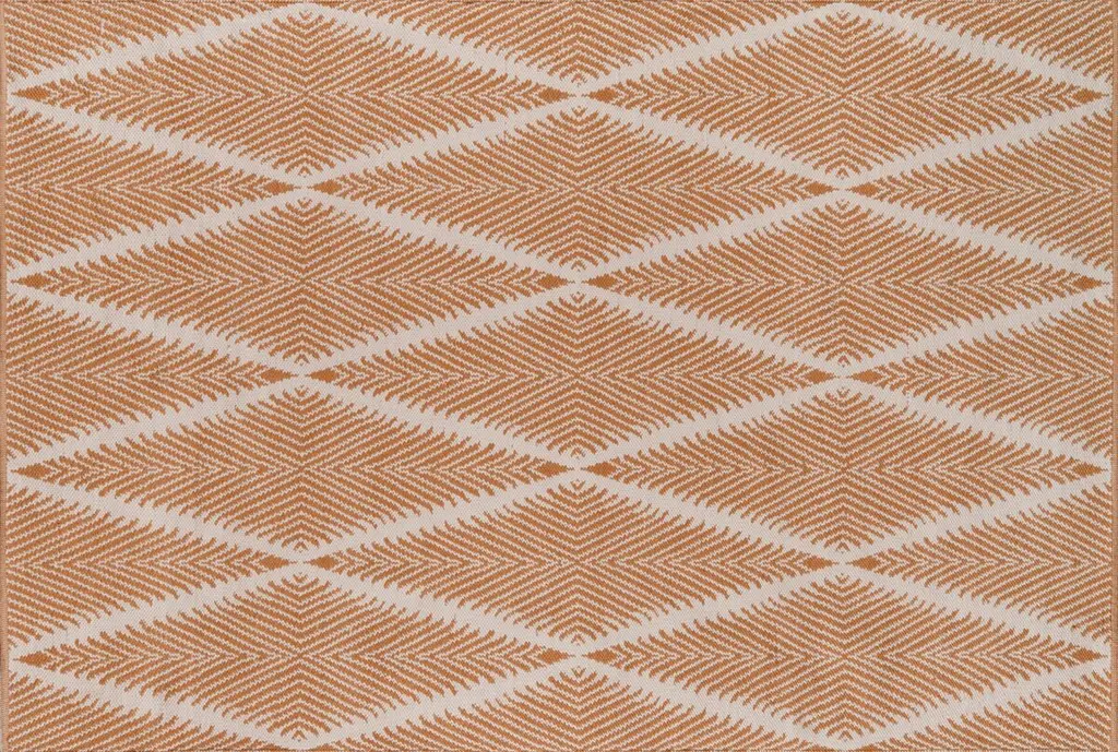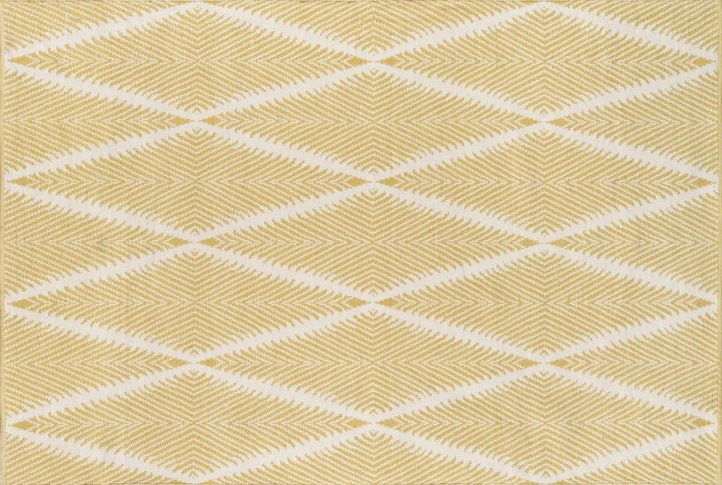 Bold in color and pattern, this outdoor rug is made of durable polypropylene, an easy-to-clean material that can withstand the elements and resists wear and tear. Perfect for use on the porch or patio, it can also be brought indoors to protect flooring in high-traffic areas.