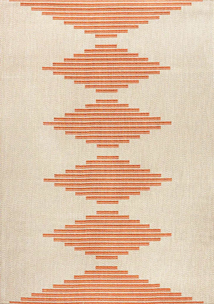 Bold in color and pattern, this outdoor rug is made of durable polypropylene, an easy-to-clean material that can withstand the elements and resists wear and tear. Perfect for use on the porch or patio, it can also be brought indoors to protect flooring in high-traffic areas.
