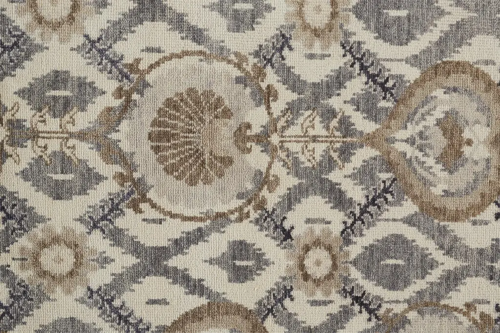 Collection: Beall Colors: Ivory, Gray, Taupe Construction: Hand Knotted Material: Face: 100%Wool / Warp: Cotton Pile: Low Pile Pile Height: 0.28" Styles: Traditional,Bohemian & Eclectic Backing: Cotton Made In: India Thickness: 0.28" Price Range: $$$$$ (Premium)